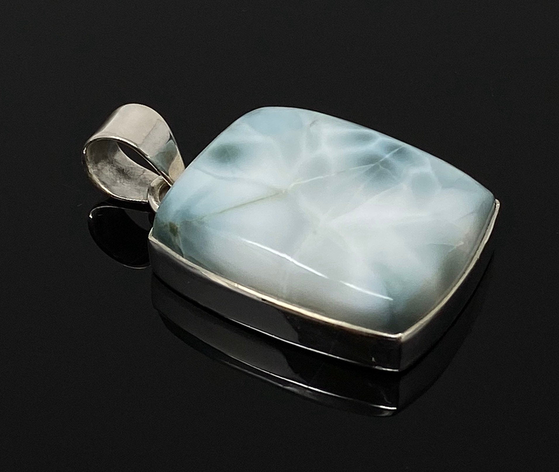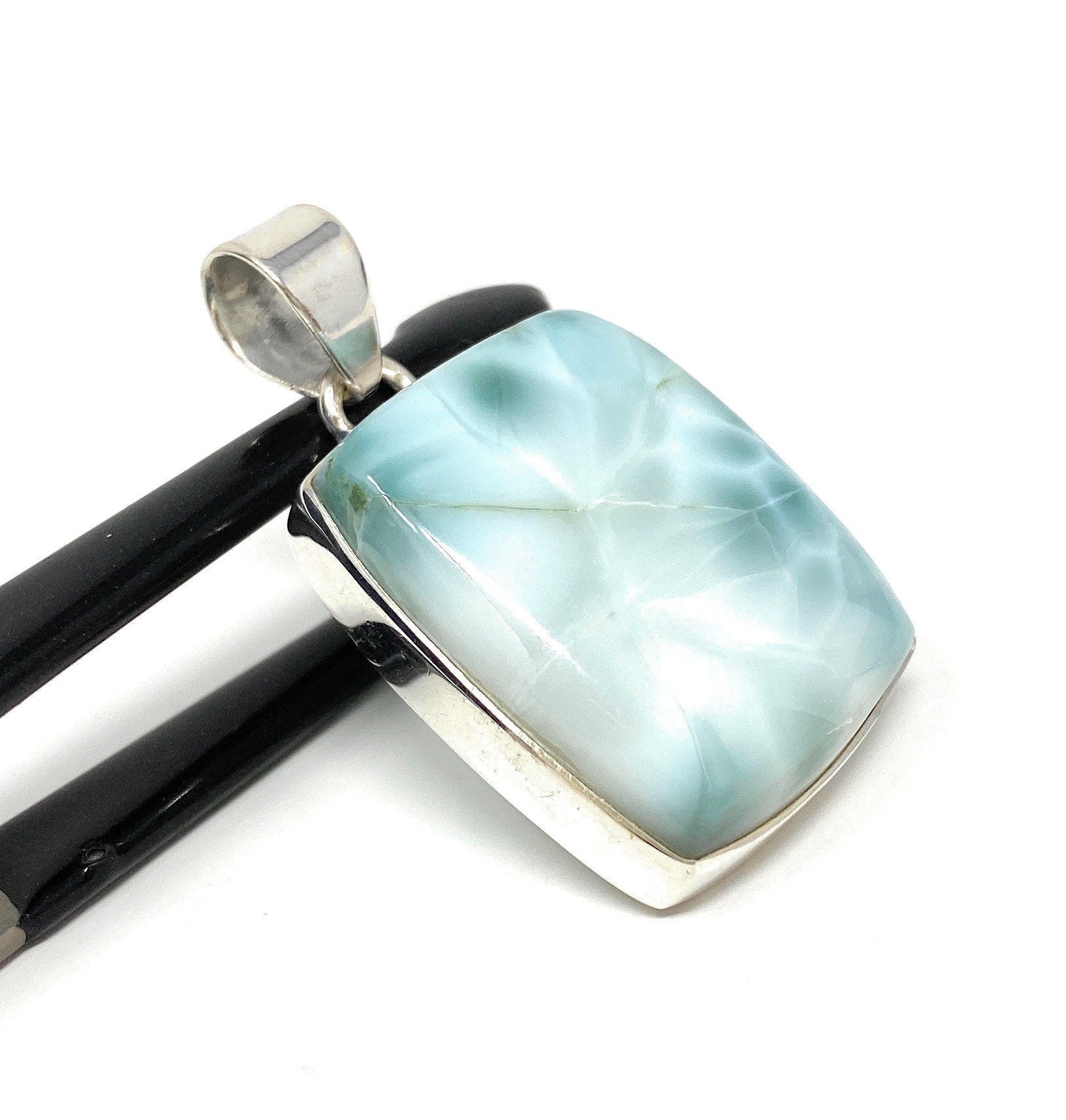 Larimar Pendant, Gemstone Pendant, Bohemian Jewelry, Sterling Silver Pendant, Natural Gemstone Pendant, 40mm X 23.5mm