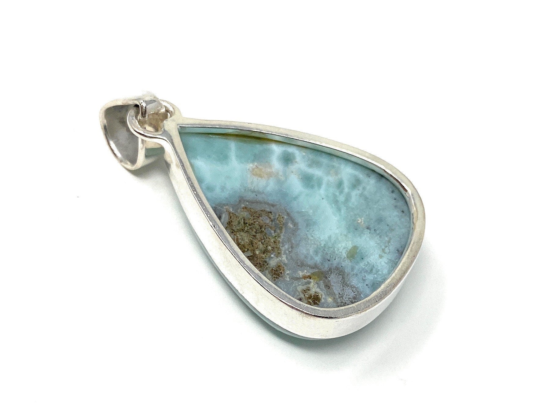 Larimar Pendant, Gemstone Pendant, Bohemian Jewelry, Sterling Silver Pendant, Natural Gemstone Pendant, 42.35 x 23.5mm