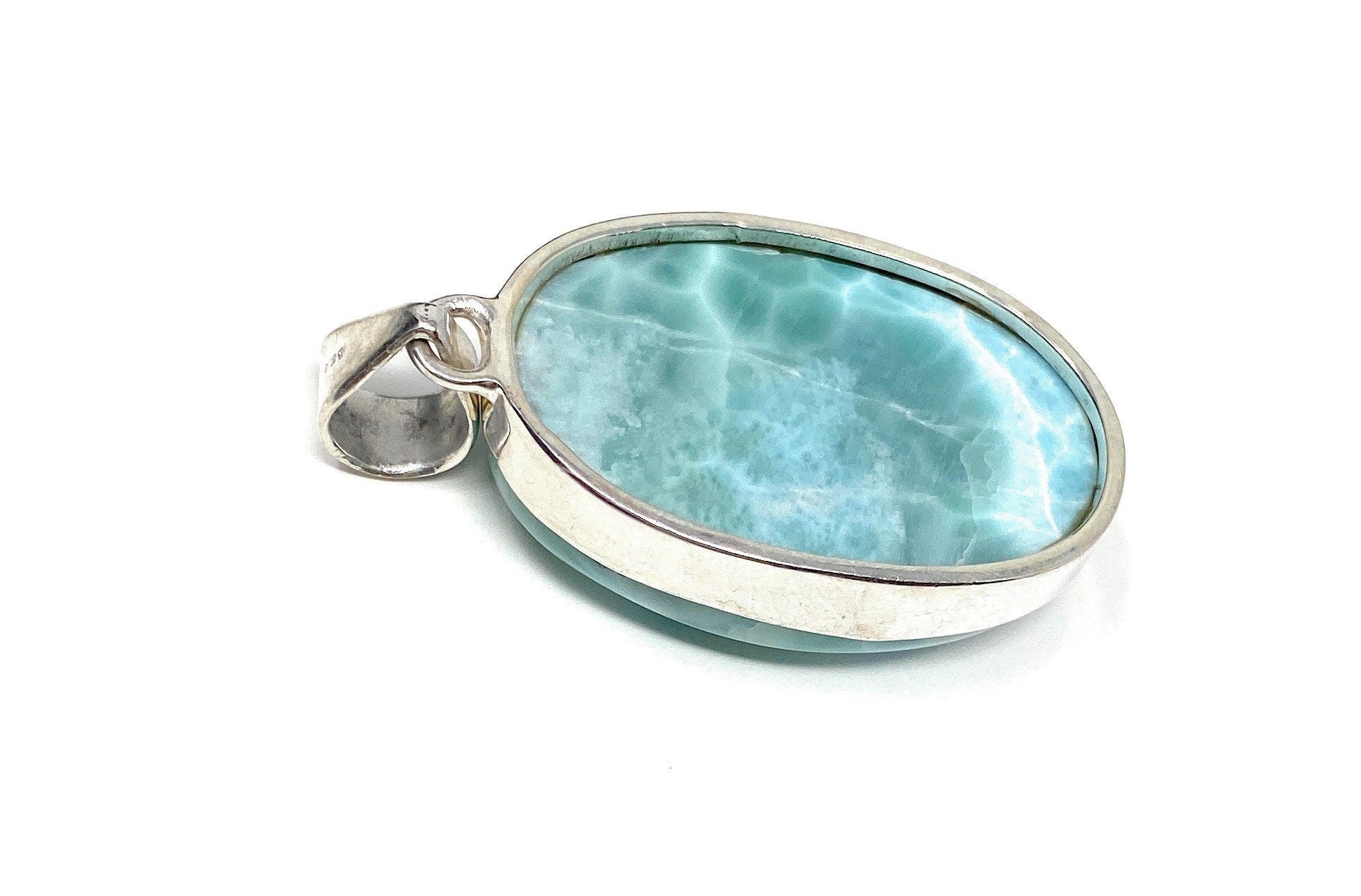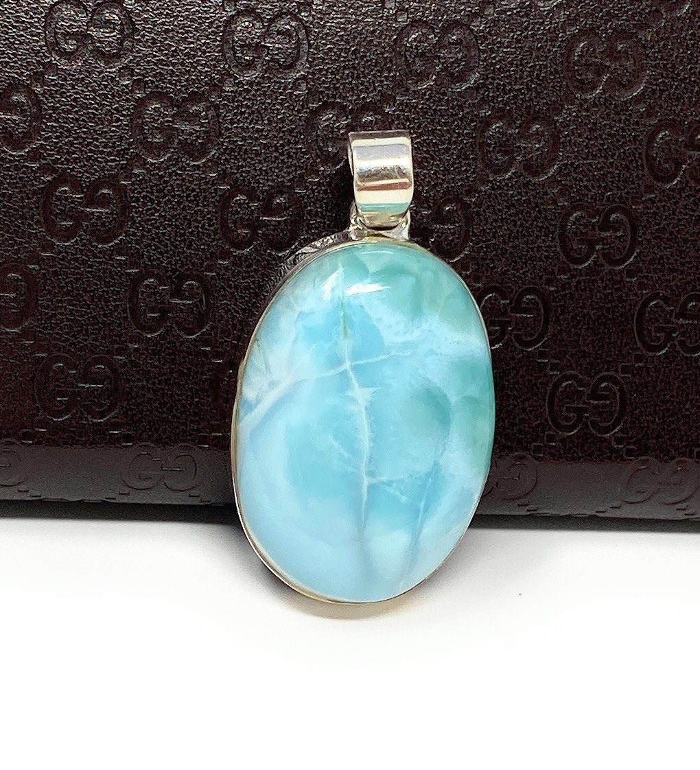 This beautiful Handmade AAA Grade Natural Larimar Gemstone Oval Shape 925 Sterling Silver Large Pendant is an excellent choice for any occasion and makes a great gift for the loved ones.