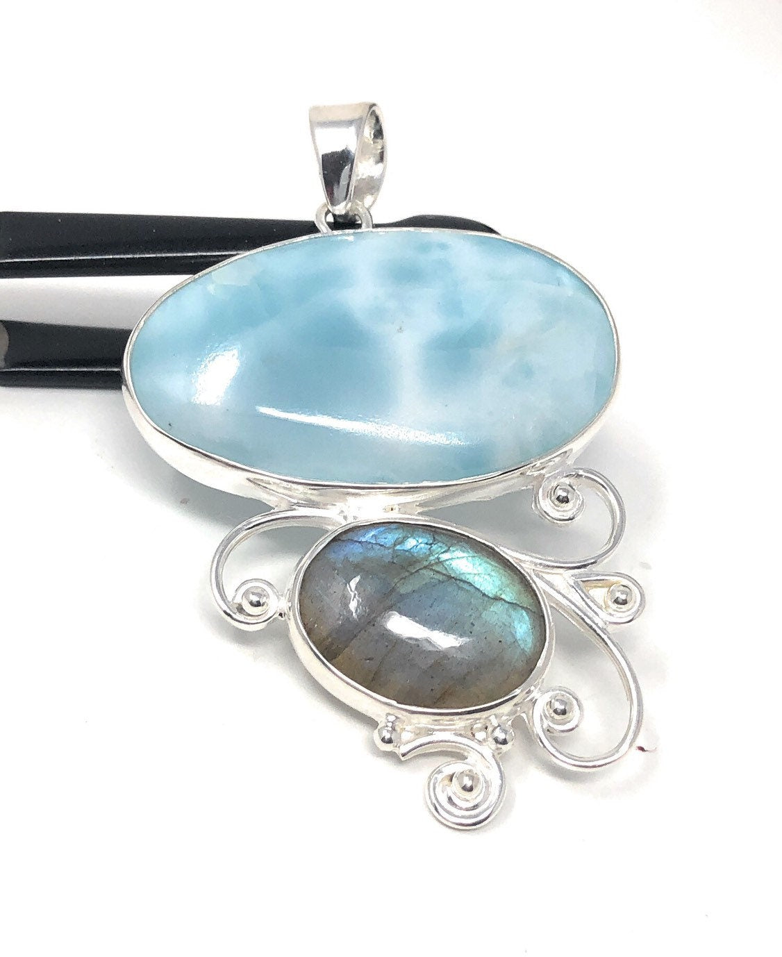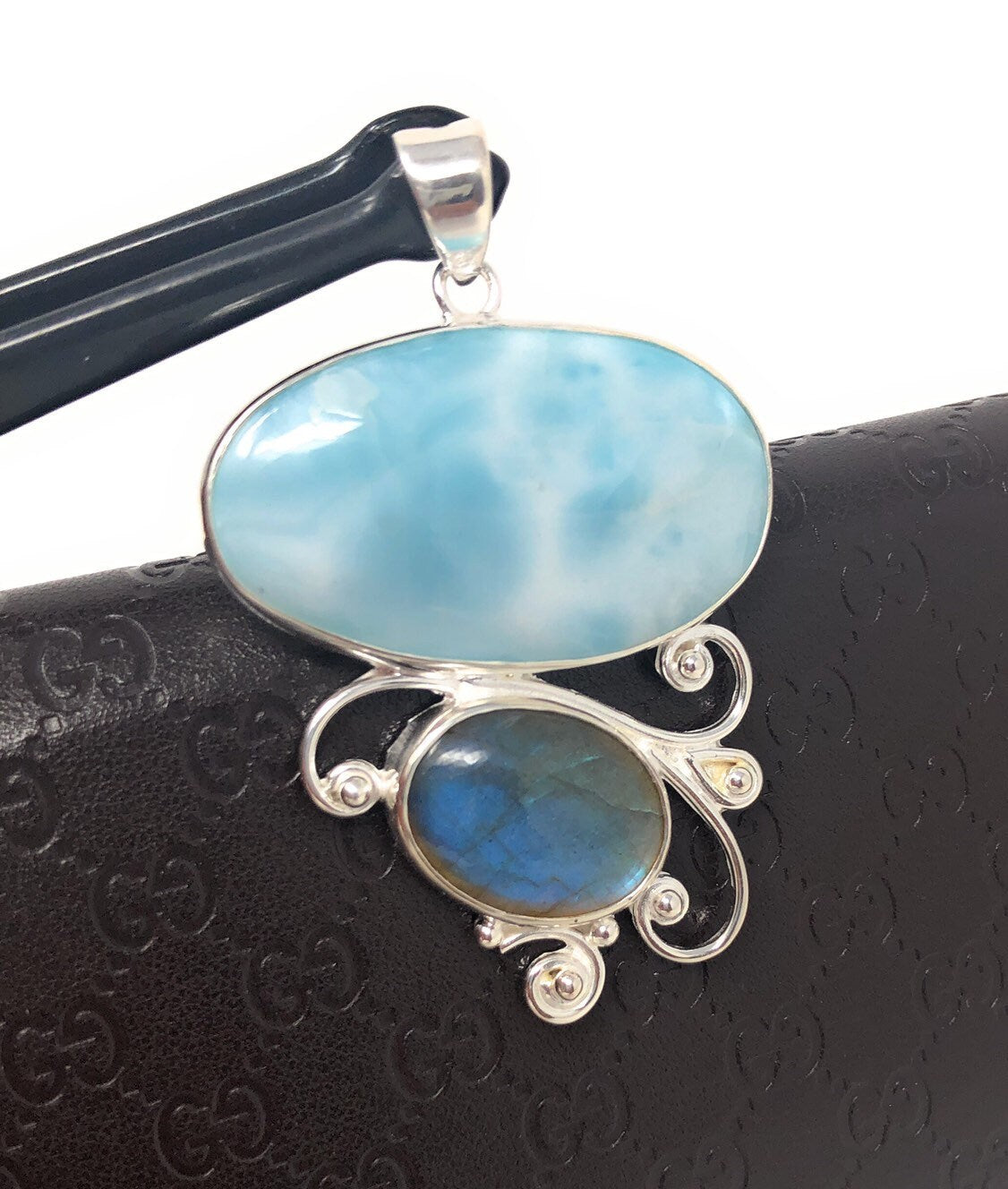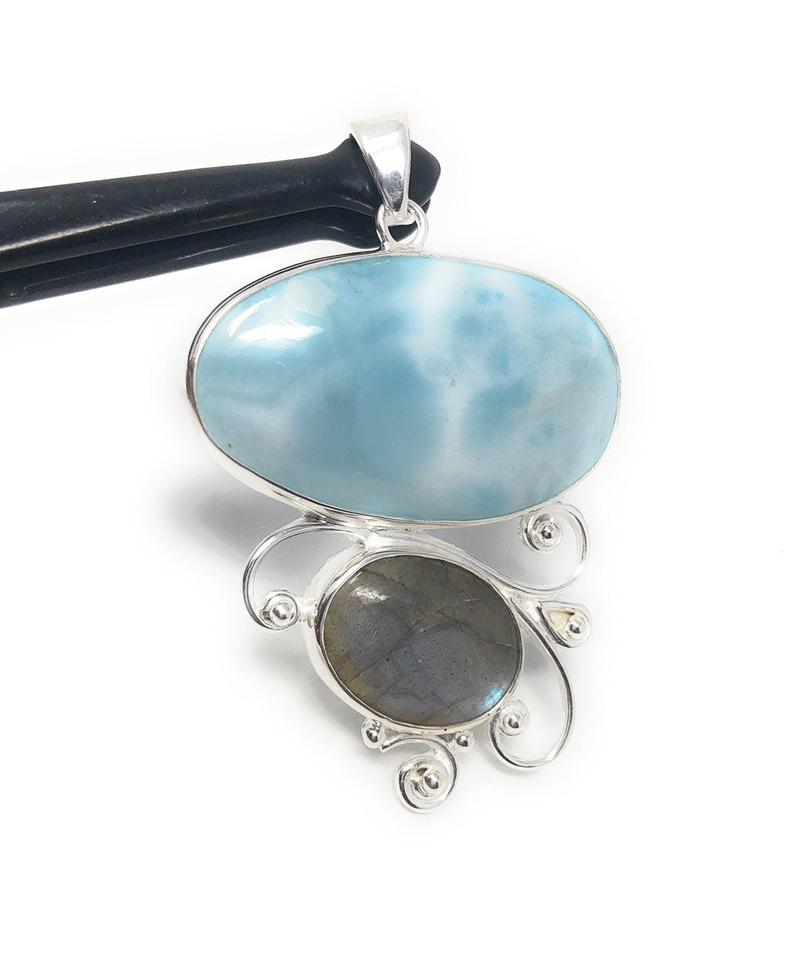 Labradorite and Larimar Gemstone Sterling Silver Pendant Jewelry at Wholesale Price.