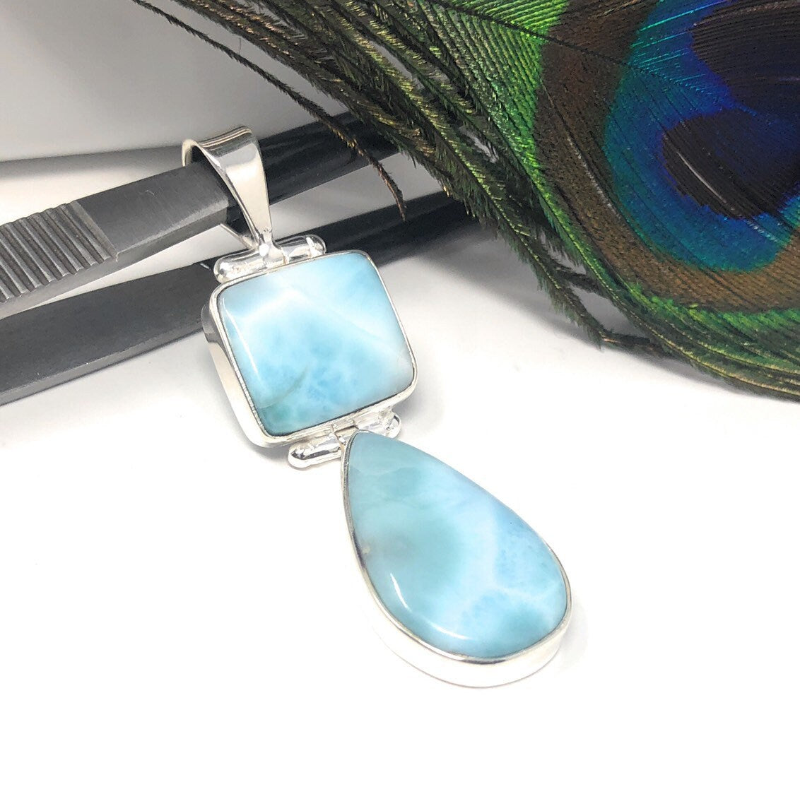 This beautiful Handmade AAA Grade Natural Larimar Gemstone 925 Sterling Silver Large Pendant is made with exclusive design by attaching two pieces of Larimar Gemstone using a hinge pattern to give the pendant flexibility and is an excellent choice for any occasion and makes a great gift for the loved ones.