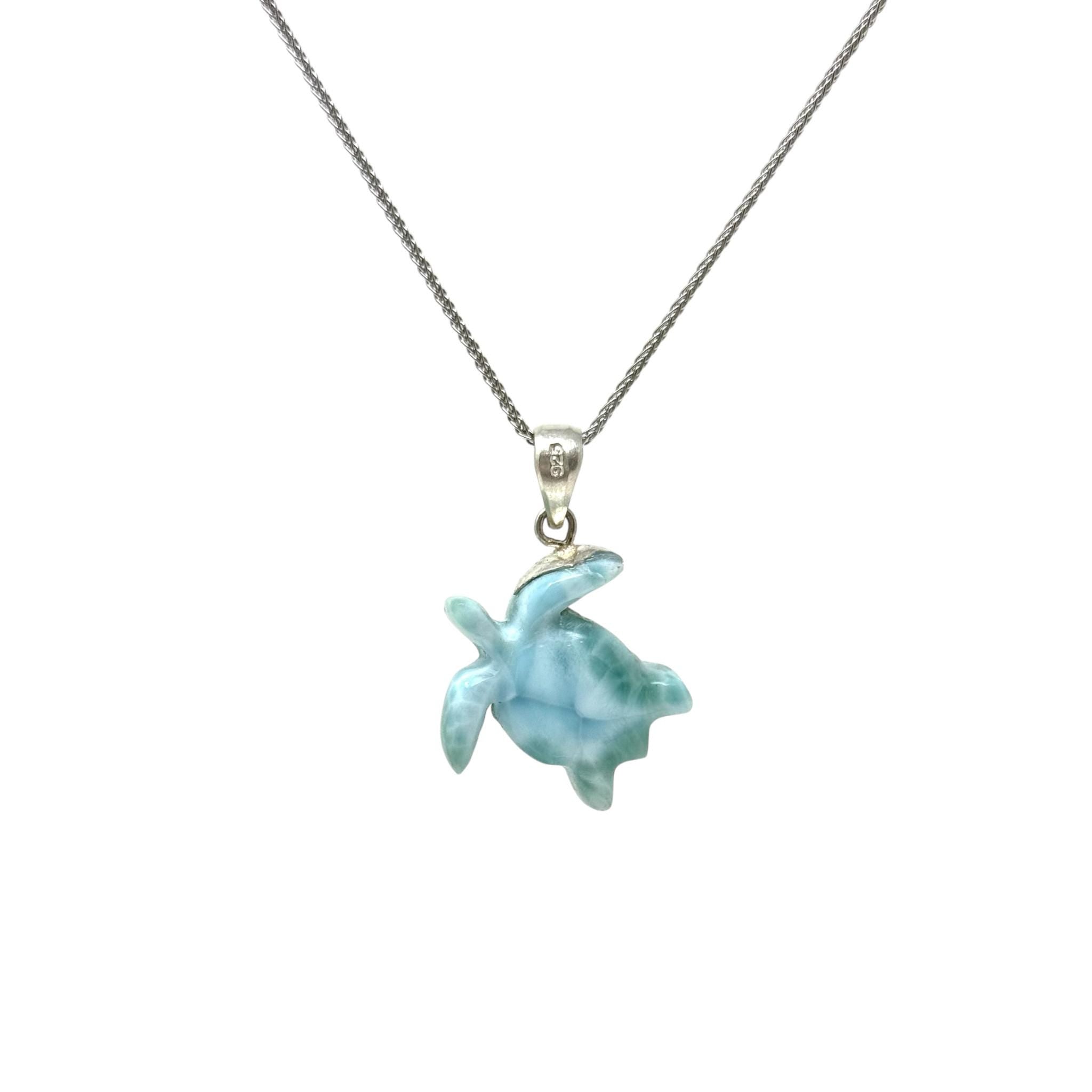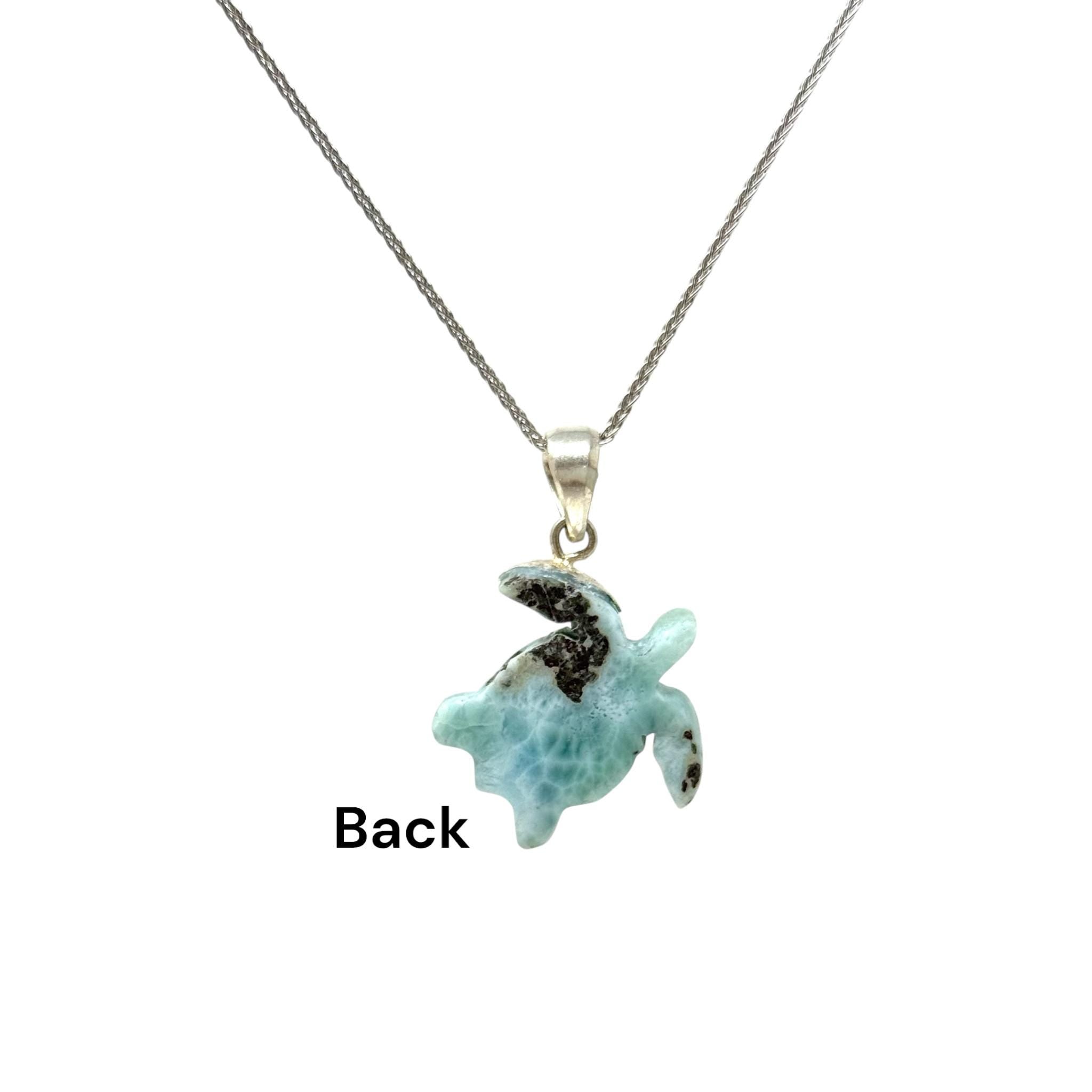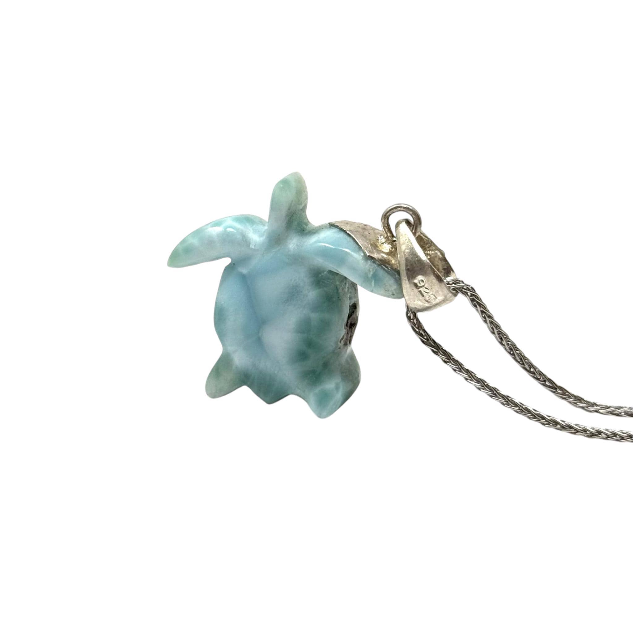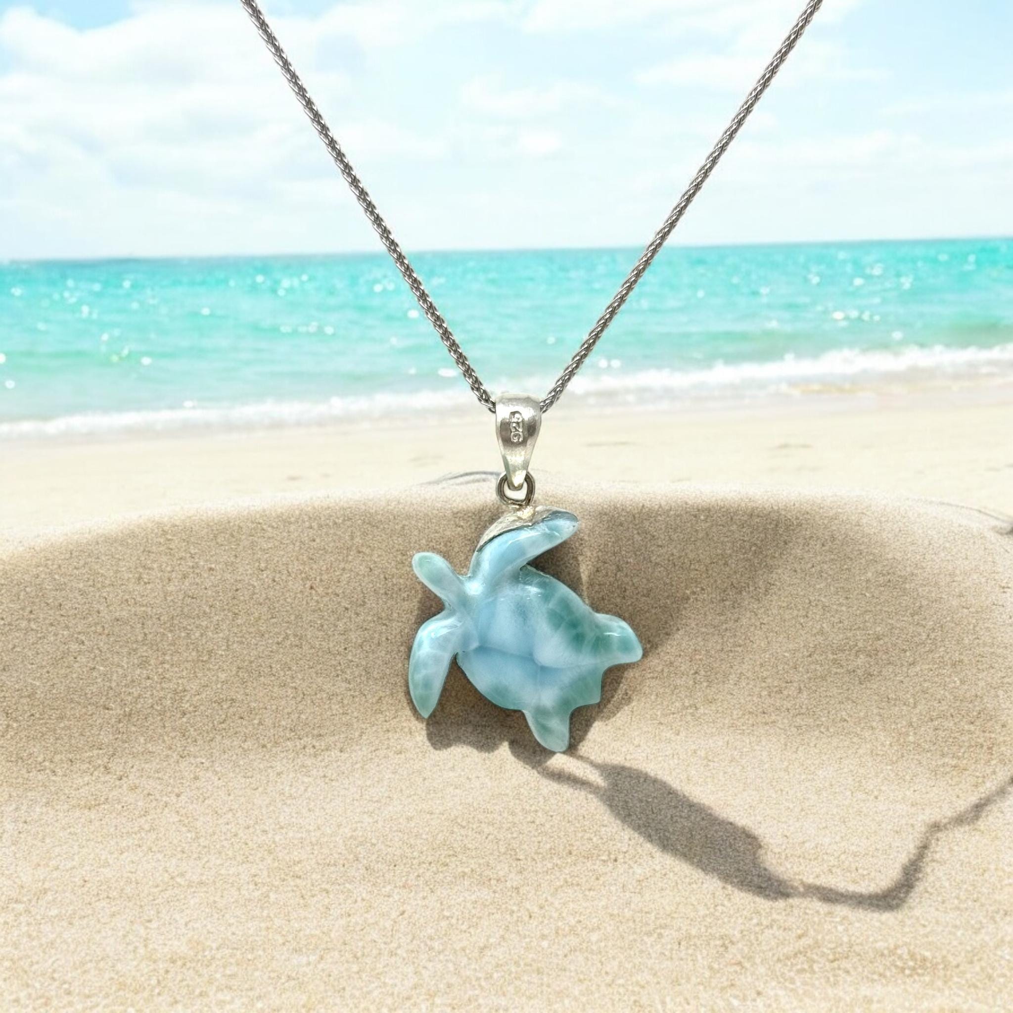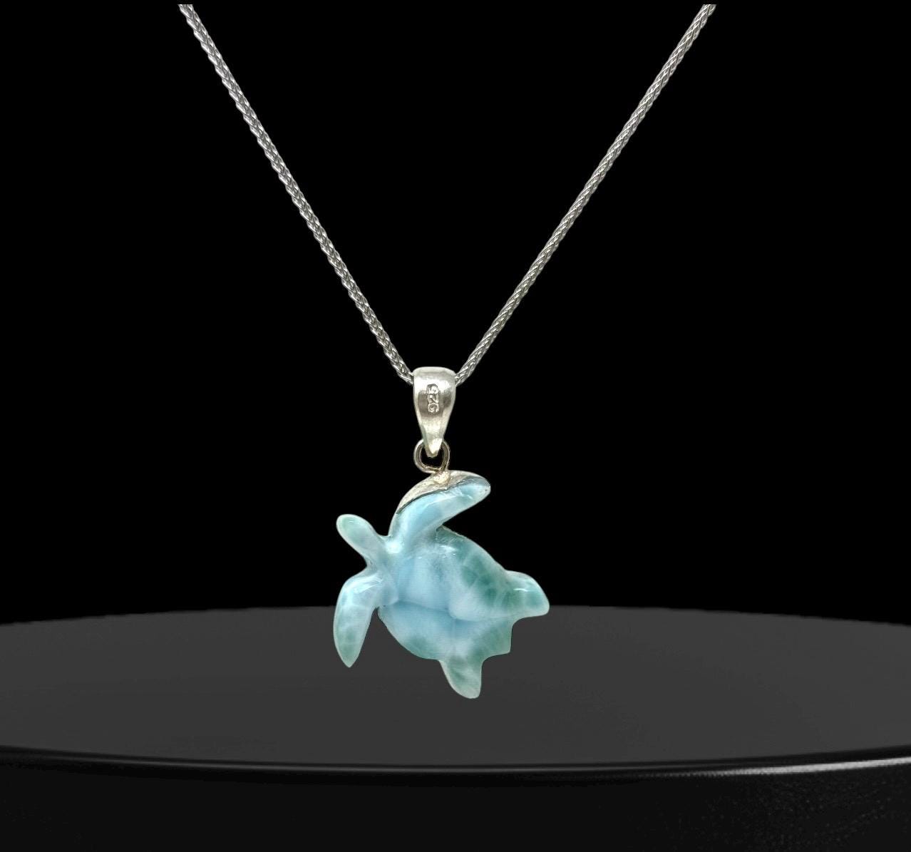 Larimar Sea Turtle Tortoise Necklace , Silver Gemstone Larimar Jewelry, Dominican Republic Larimar Necklace Gifts for Her, 1.75"x 1.30"
