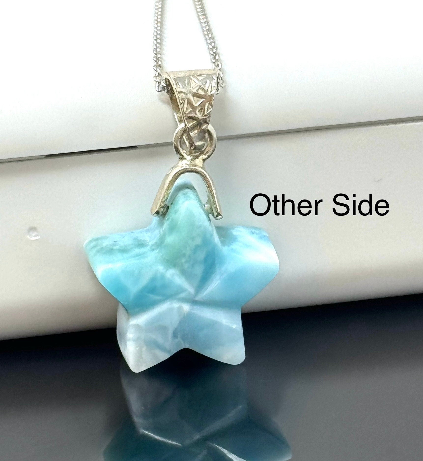 Larimar Star Pendant Necklace , Sterling Silver Hand Carved Larimar Necklace, Bohemian Jewelry, Natural Dominican Republic Larimar Pendant