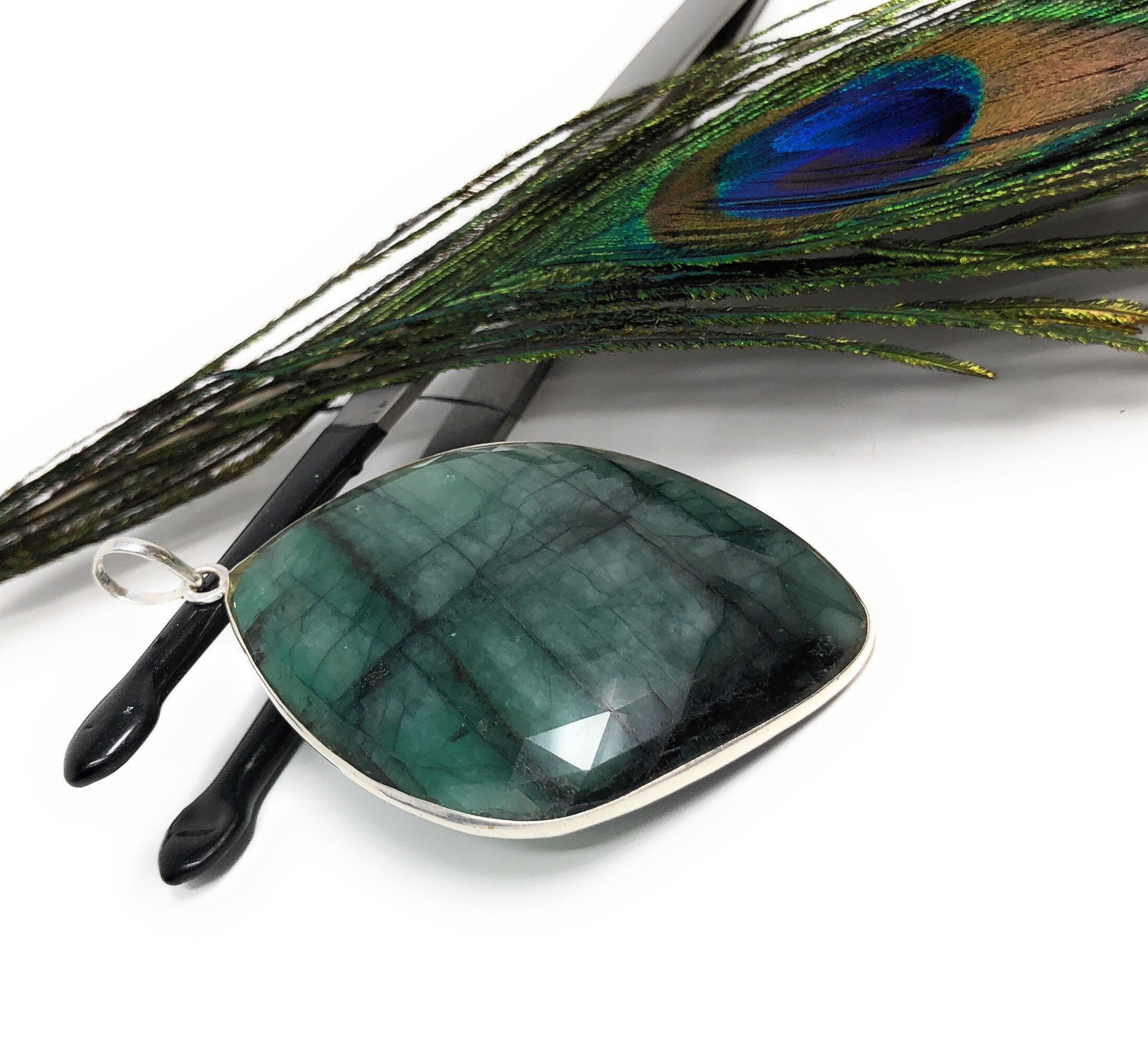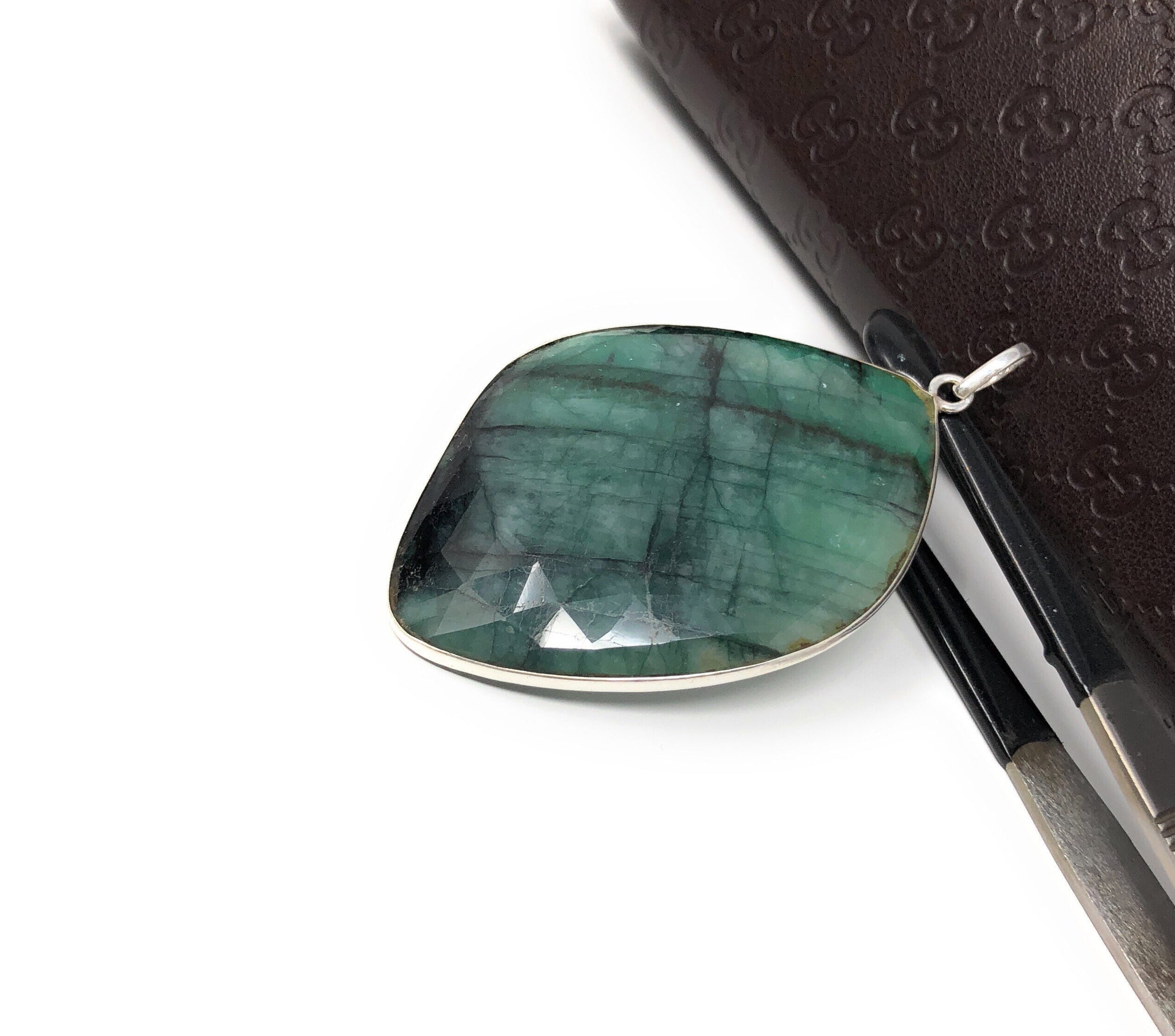 Natural Genuine Rose Cut Sakota Emerald Gemstone Sterling Silver Pendant for DIY Jewelry at Wholesale Price.
