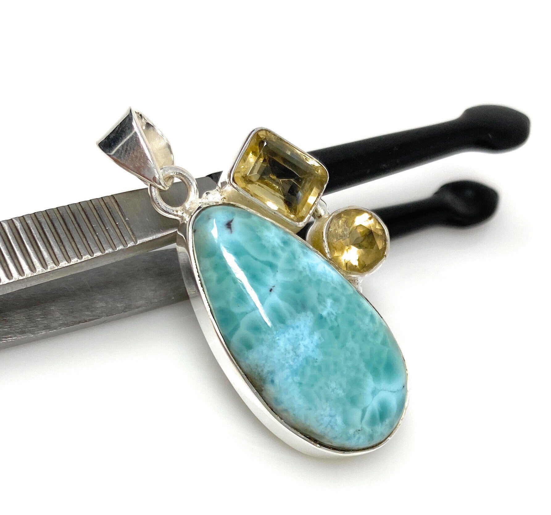 Natural Larimar and Citrine Gemstone Pendant, Sterling Silver Jewelry, Larimar Pendant, Citrine Pendant, Bohemian Jewelry