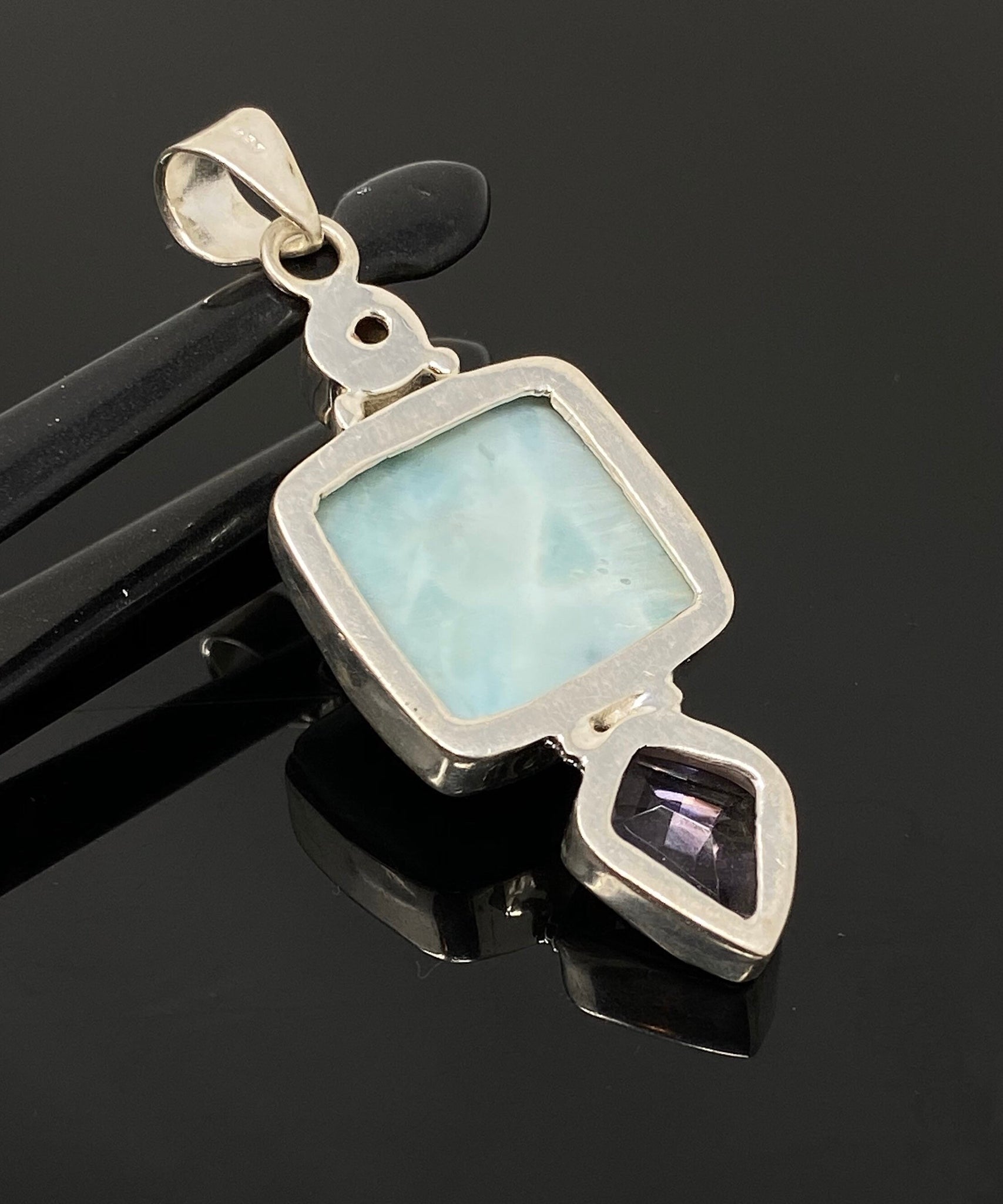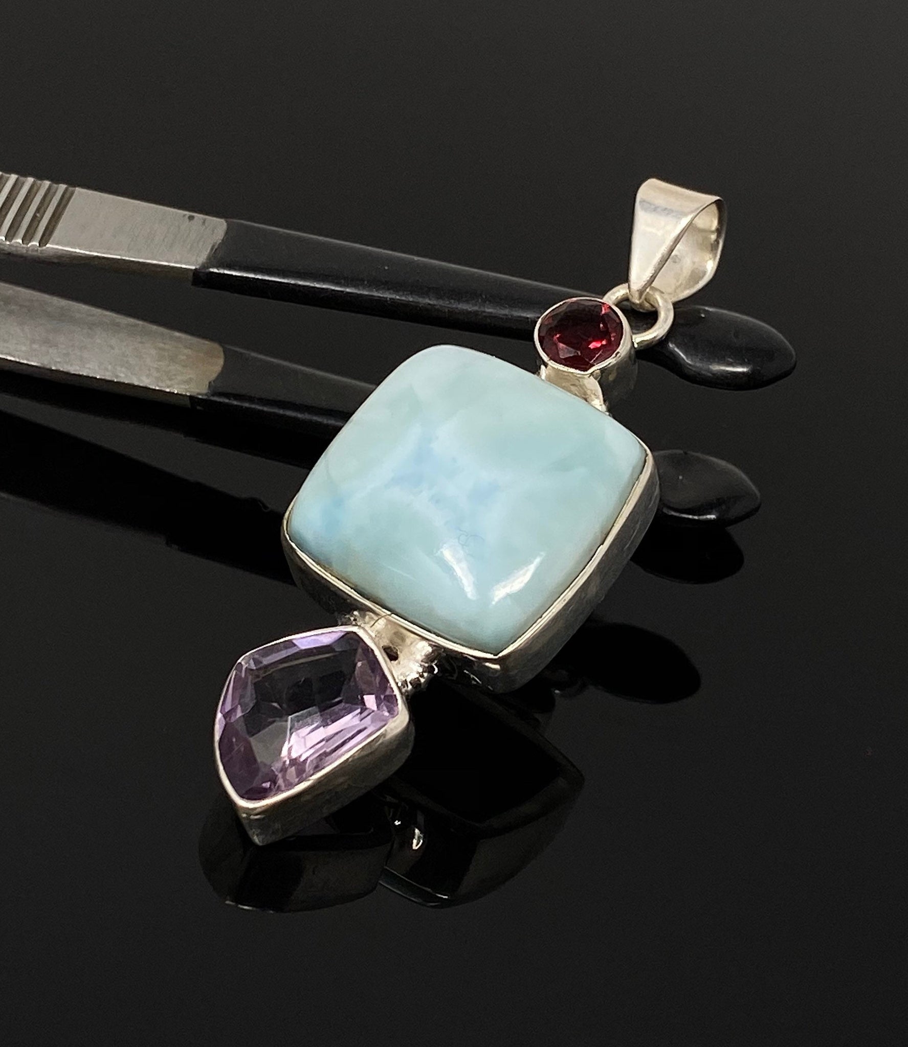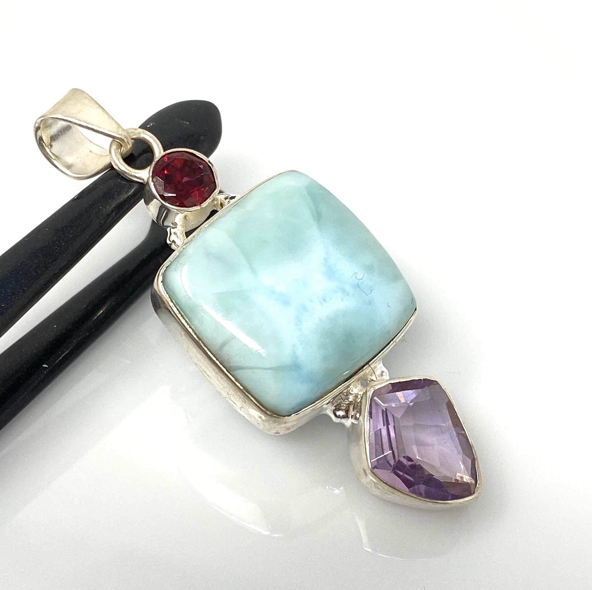 Natural Larimar, Garnet and Amethyst Gemstone Sterling Silver Pendant DIY Jewelry at Wholesale Price.