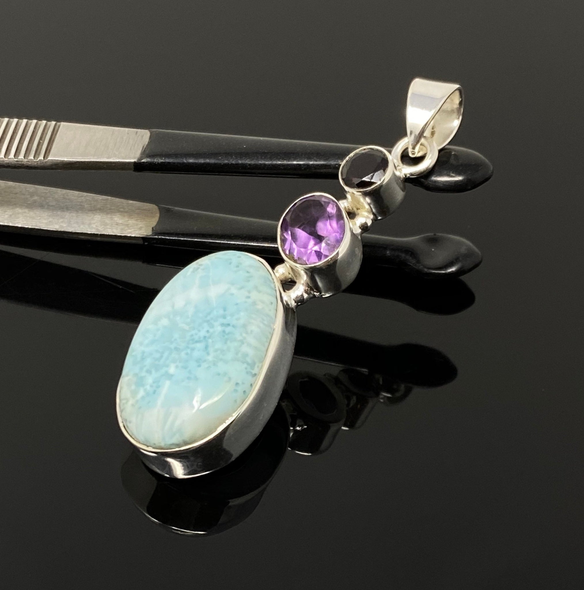Natural Larimar, Garnet and Amethyst Gemstone Sterling Silver Pendant DIY Jewelry at Wholesale Price.