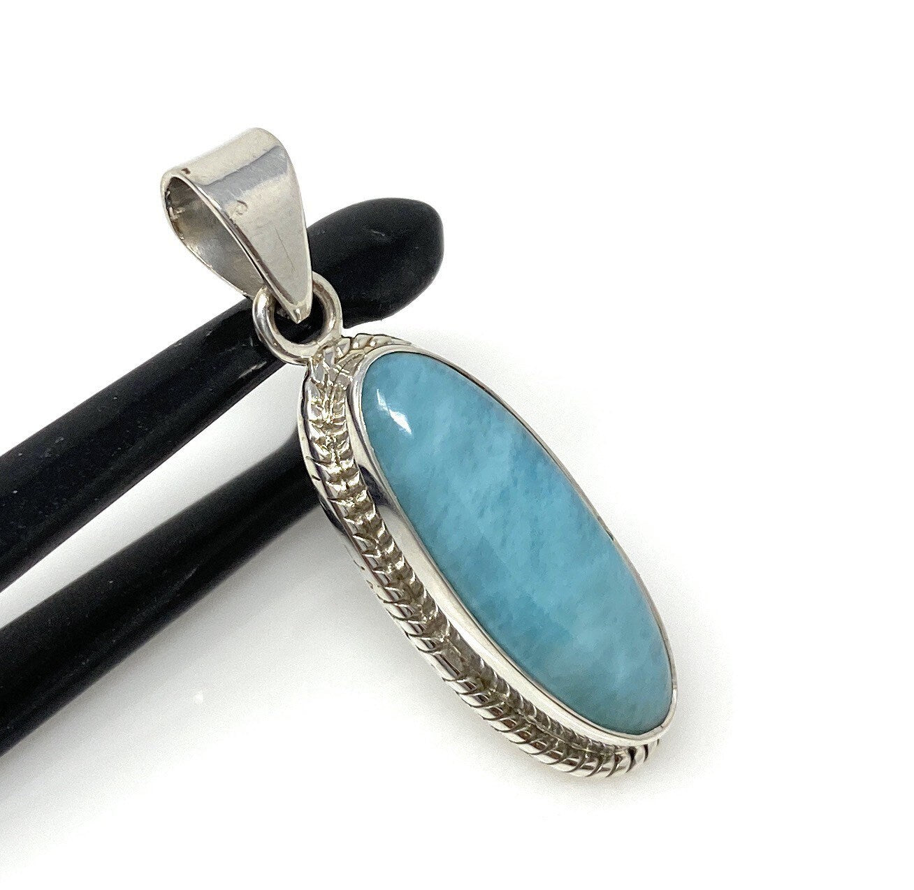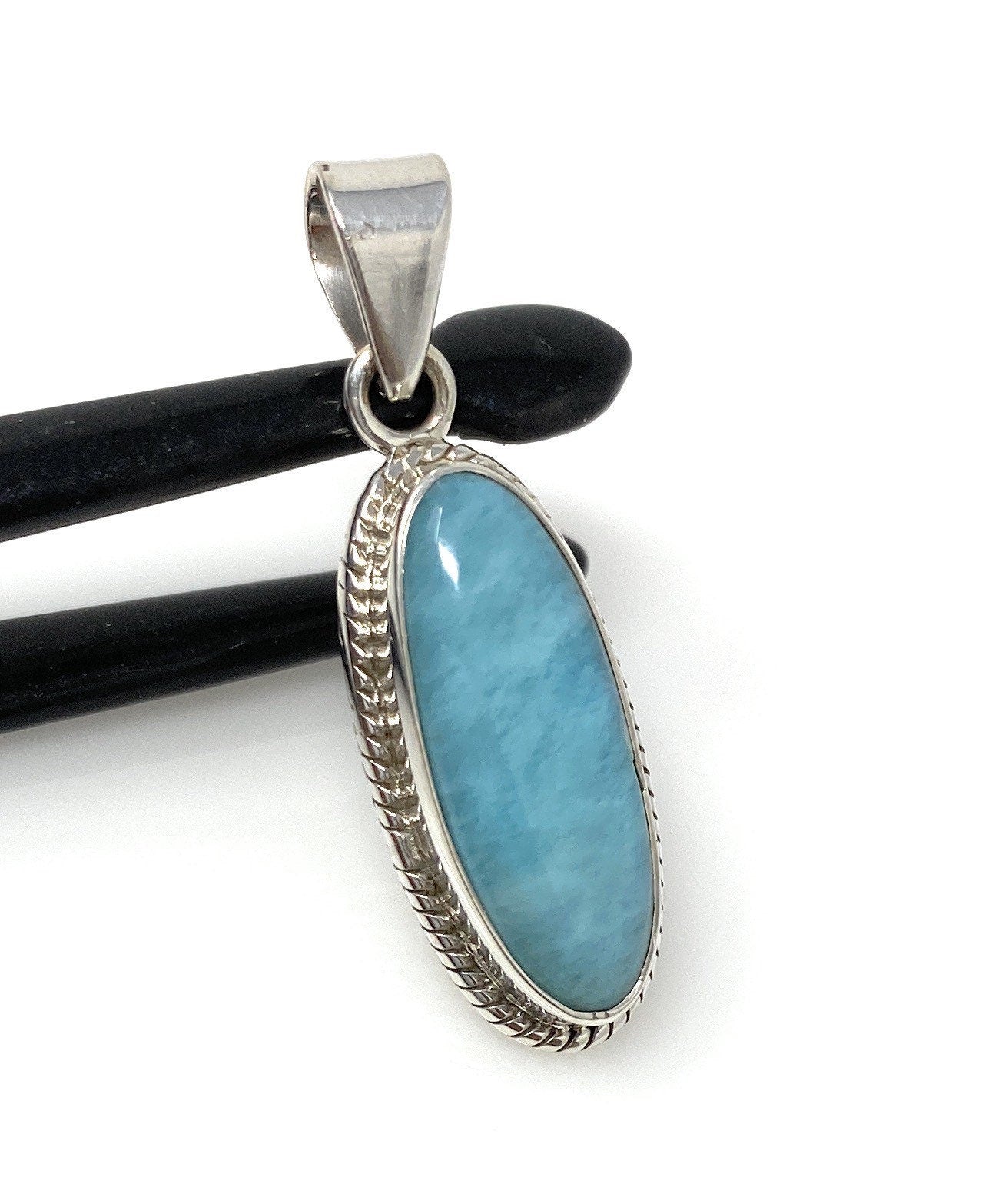 Natural Larimar Gemstone Pendant, Bohemian Jewelry, Sterling Silver Pendant, Gifts for Her, 1.65” x 0.55”