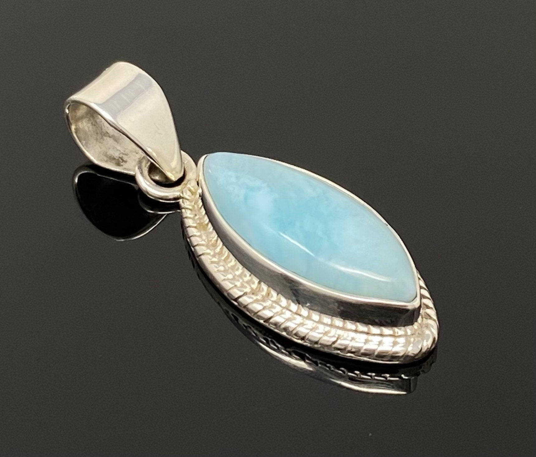 Natural Larimar Gemstone Pendant, Bohemian Jewelry, Sterling Silver Pendant, Gifts for Her, 1.45” x 0.50”