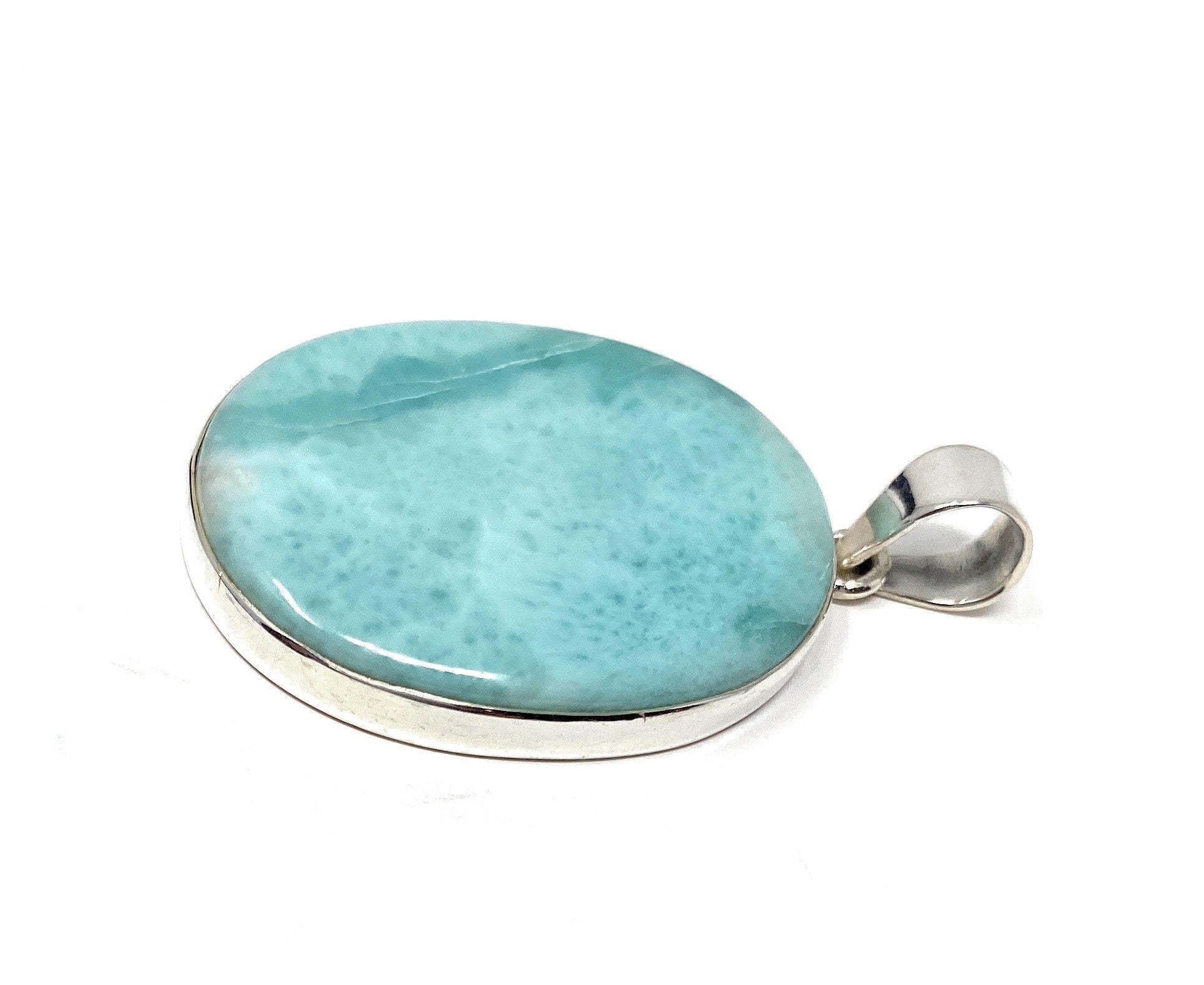 This beautiful Handmade AAA Grade Natural Larimar Gemstone Oval Shape 925 Sterling Silver Large Pendant is an excellent choice for any occasion and makes a great gift for the loved ones.