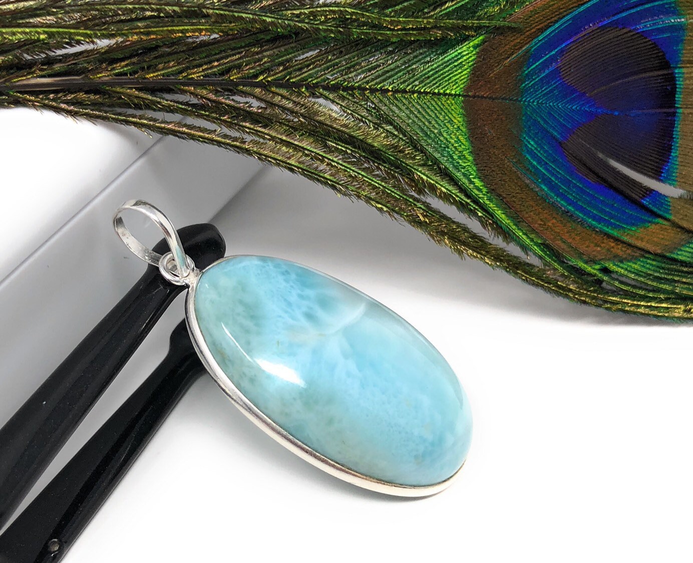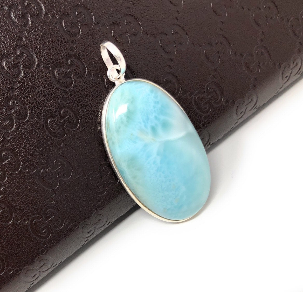 This beautiful Handmade AAA Grade Natural Larimar Gemstone Oval Shape 925 Sterling Silver Large Pendant is an excellent choice for any occasion and makes a great gift for the loved ones.