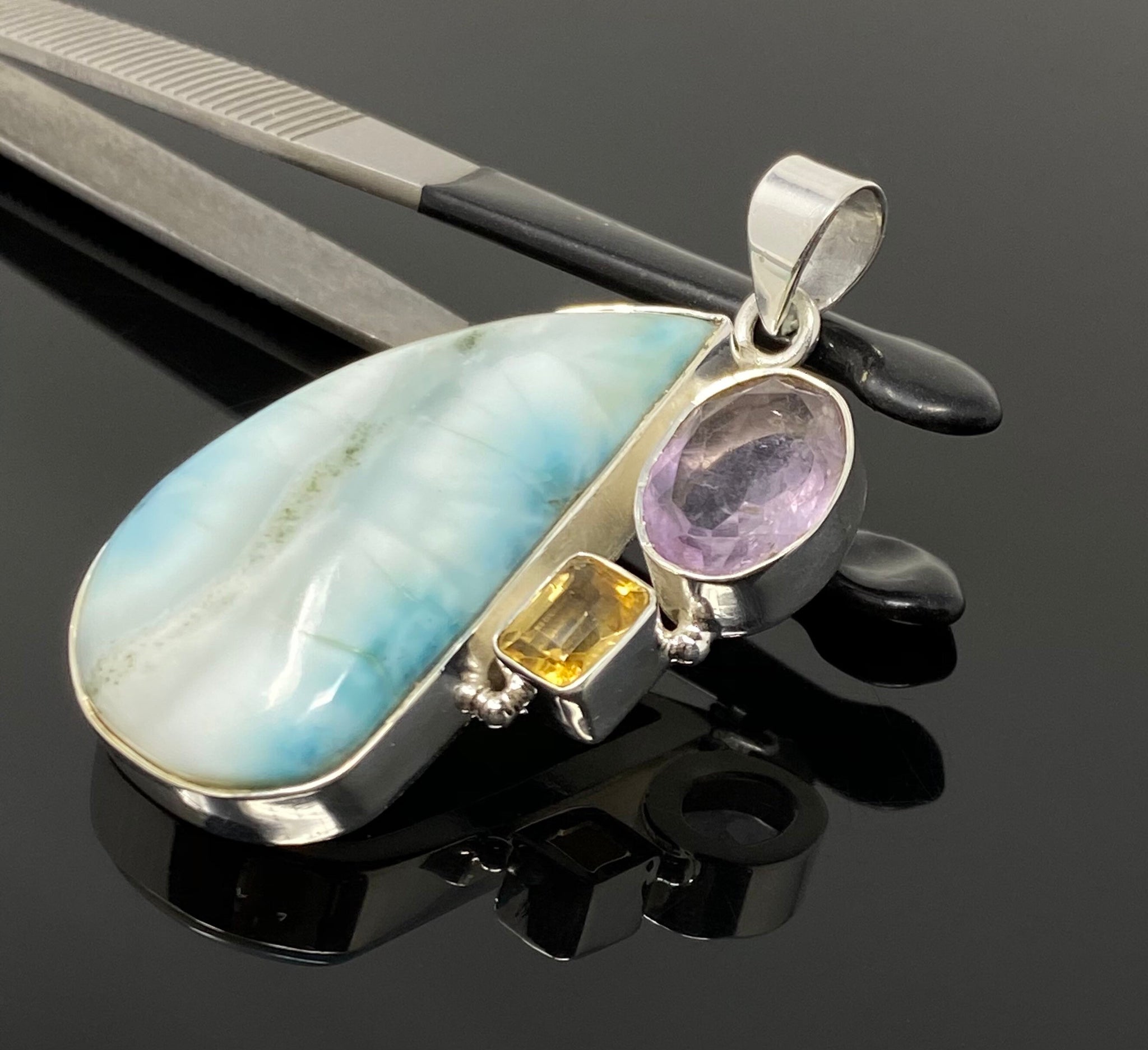 Natural Larimar, Amethyst, and Citrine Gemstone Sterling Silver Pendant DIY Jewelry at Wholesale Price.