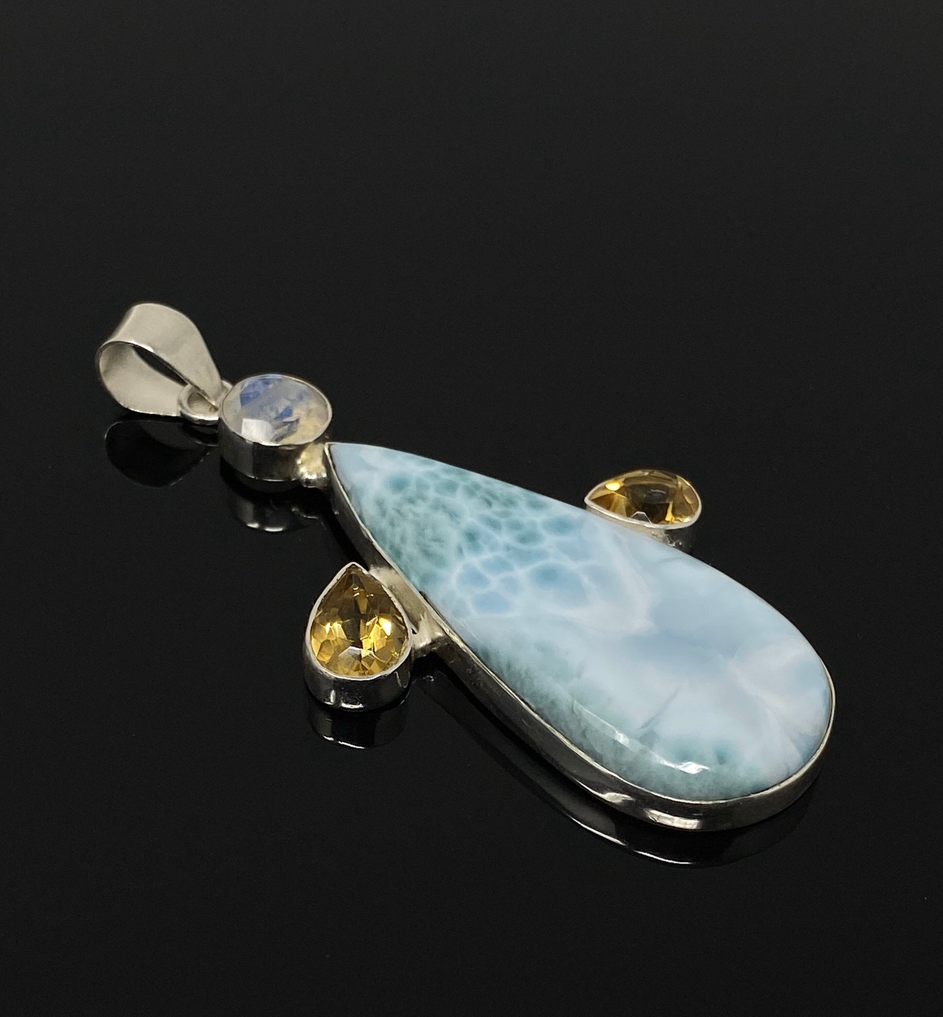 Natural Larimar with Citrine and Moonstone Gemstone Sterling Silver Pendant DIY Jewelry at Wholesale Price.