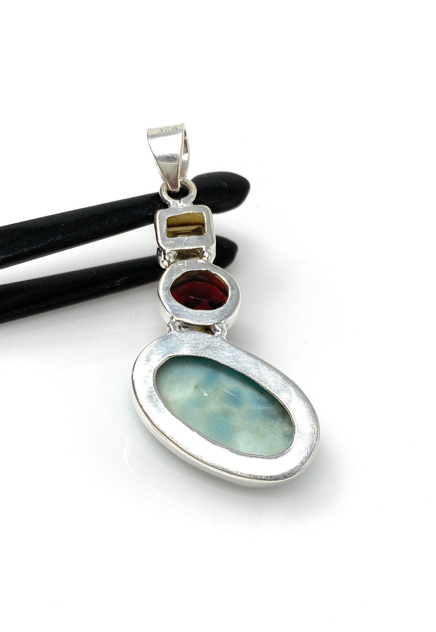 Natural Larimar with Garnet and Citrine Gemstone Pendant, Sterling Silver Jewelry, Larimar Pendant, Citrine Pendant, Bohemian Jewelry