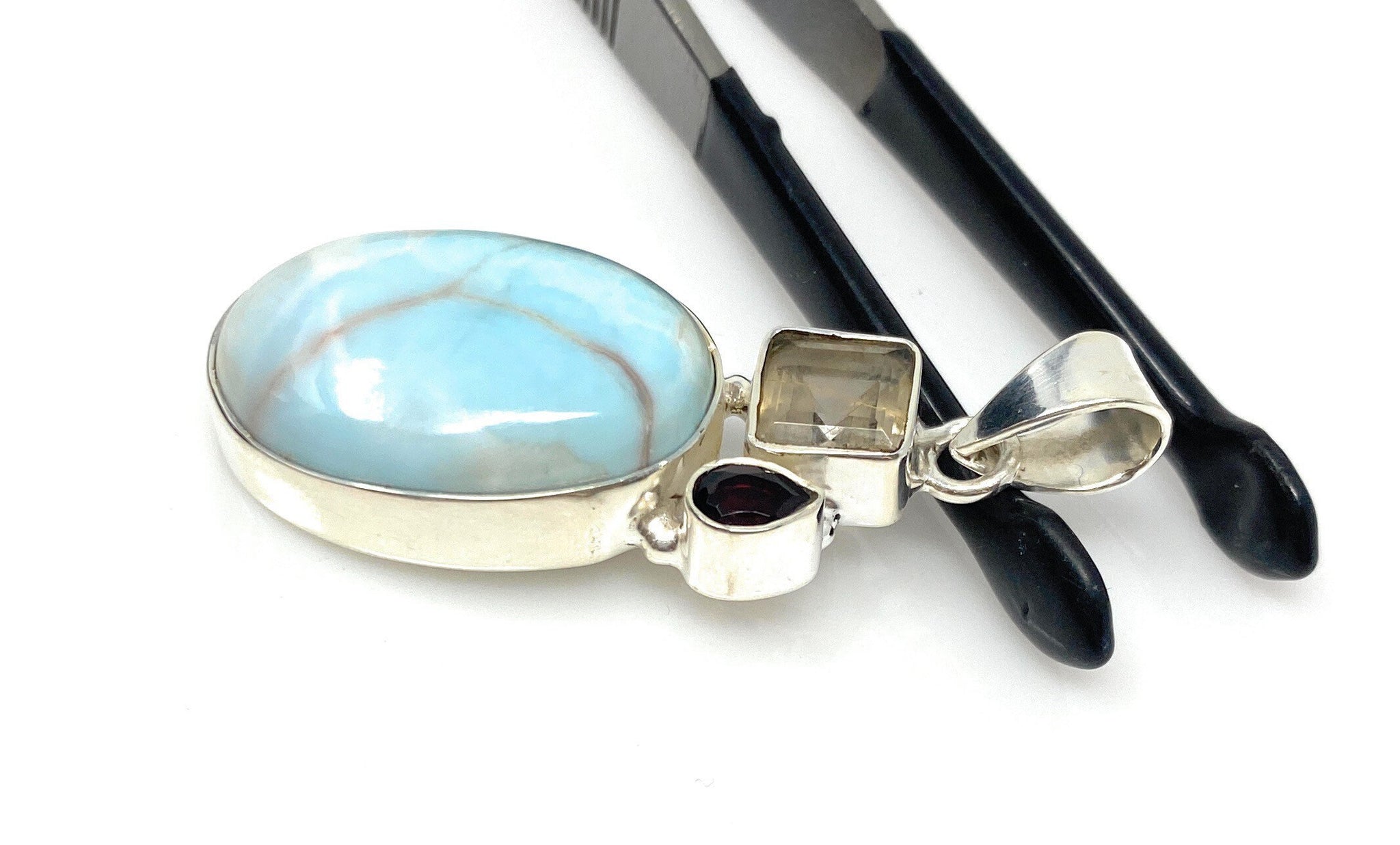 Natural Larimar, Garnet, and Golden Rutile Gemstone Sterling Silver Pendant DIY Jewelry at Wholesale Price.