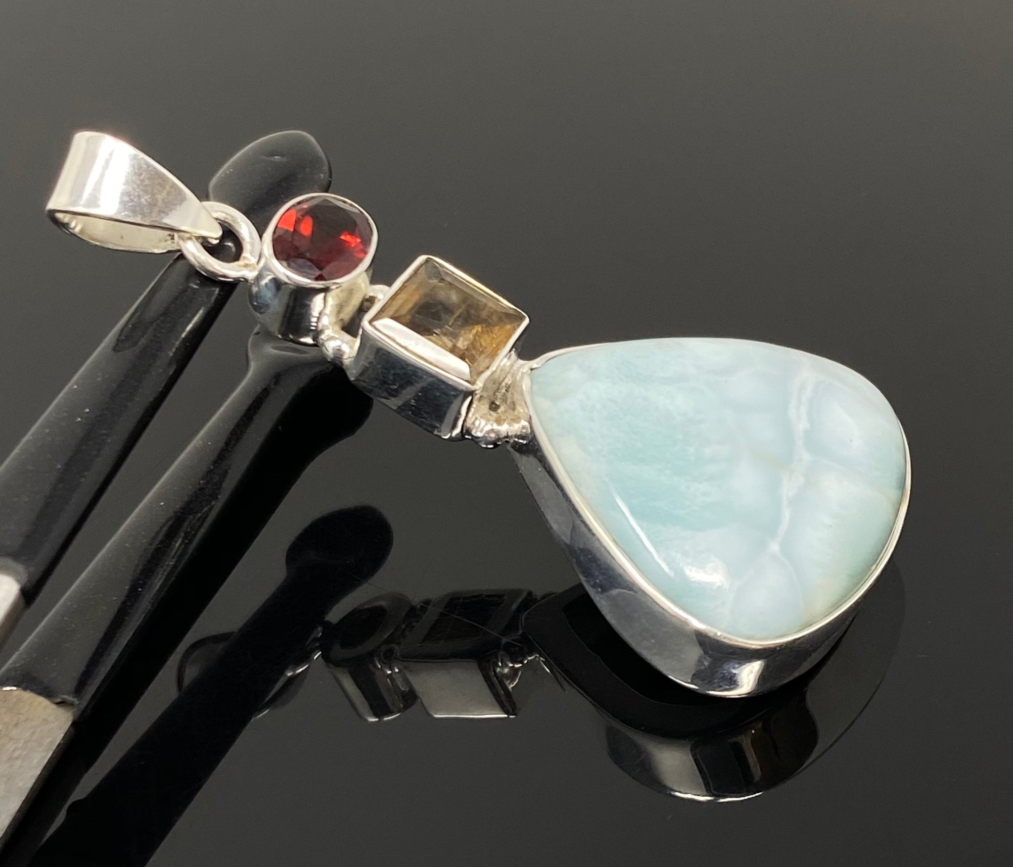 Natural Larimar, Garnet, and Golden Rutile Gemstone Sterling Silver Pendant DIY Jewelry at Wholesale Price.