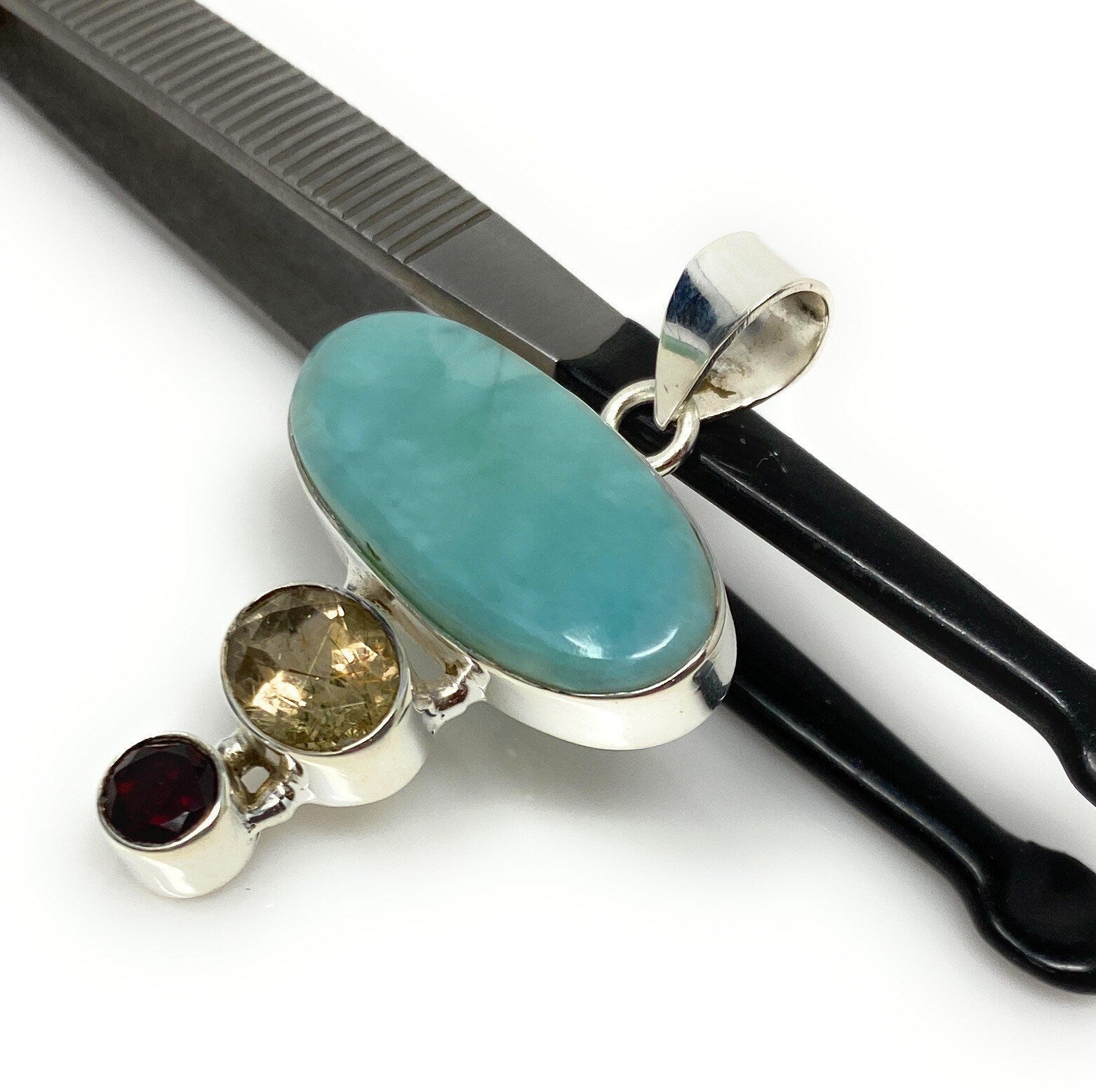Natural Larimar, Garnet, and Yellow Rutile Gemstone Sterling Silver Pendant DIY Jewelry at Wholesale Price.