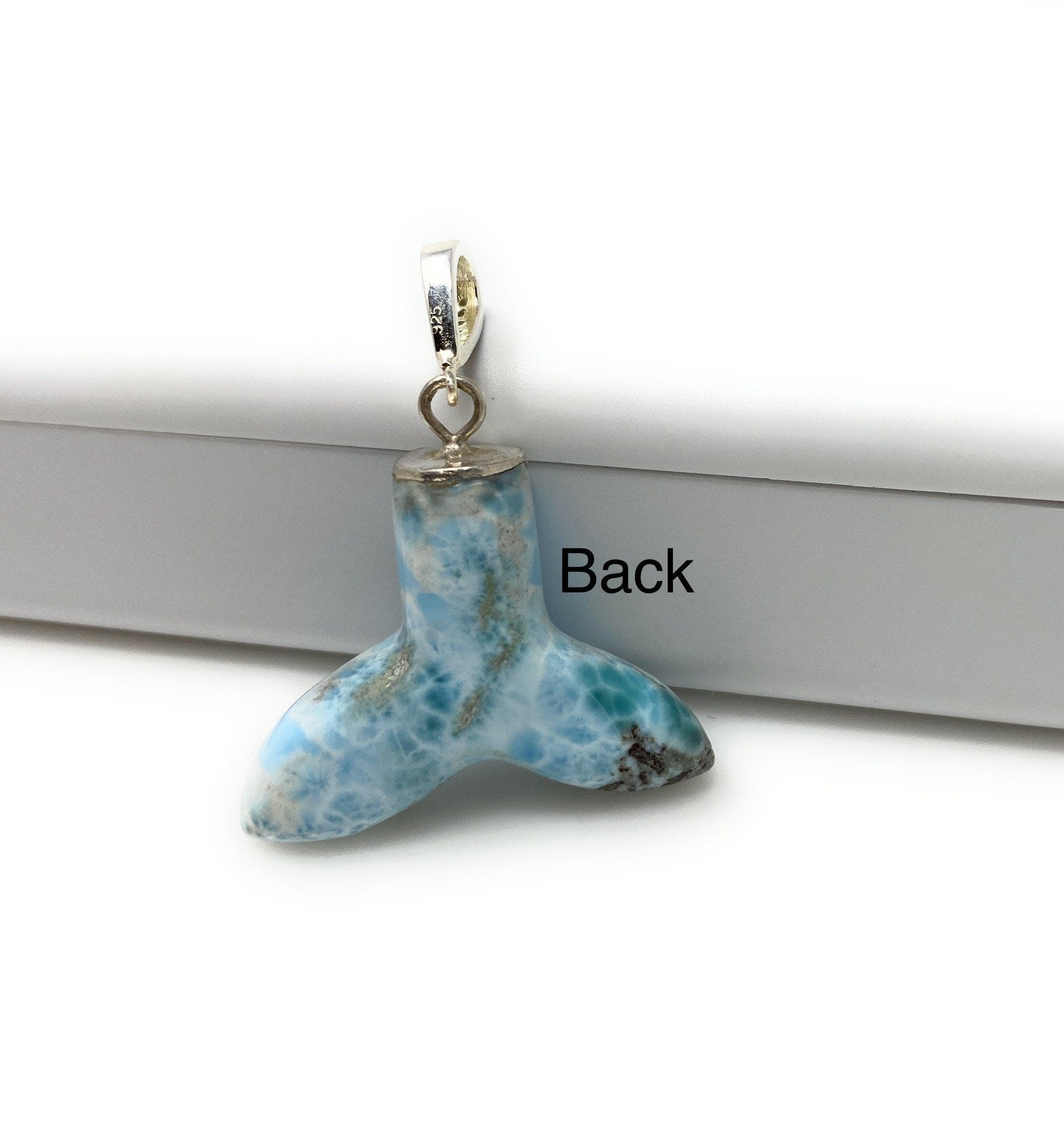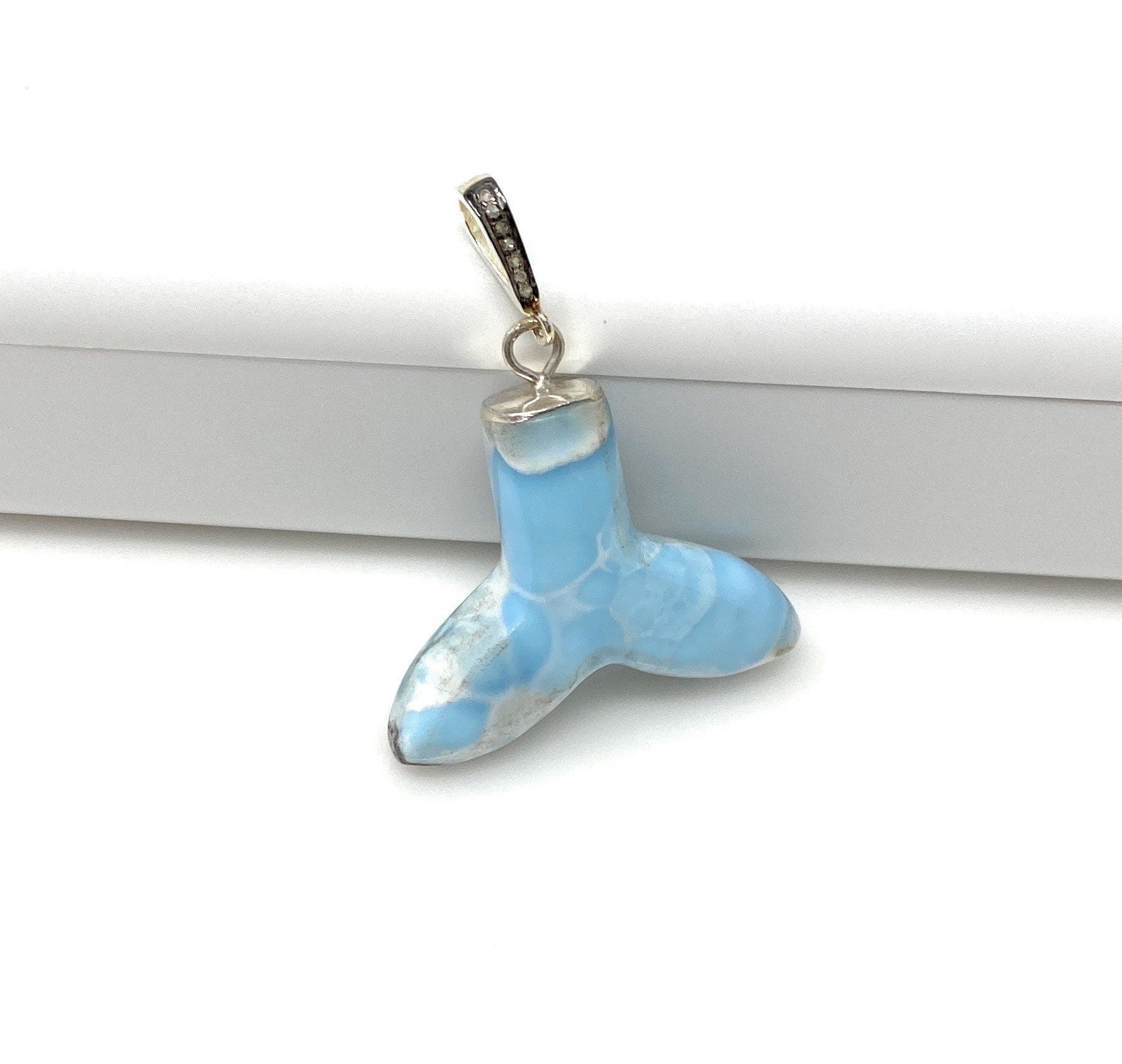 Rare Larimar Mermaid Tail Pendant, Sterling Silver Pave Diamond Pendant, Bohemian Jewelry, Larimar Whale Tail Pendant