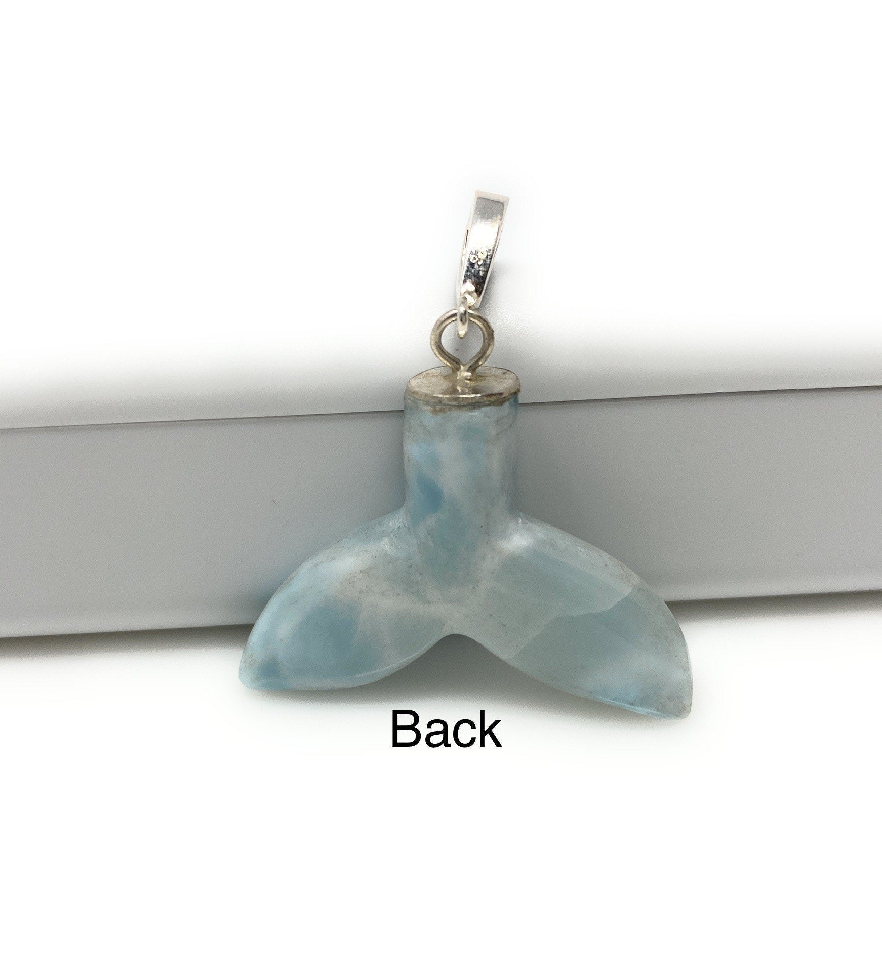 Rare Larimar Mermaid Tail Pendant, Sterling Silver Pave Diamond Pendant, Bohemian Jewelry, Larimar Whale Tail Pendant