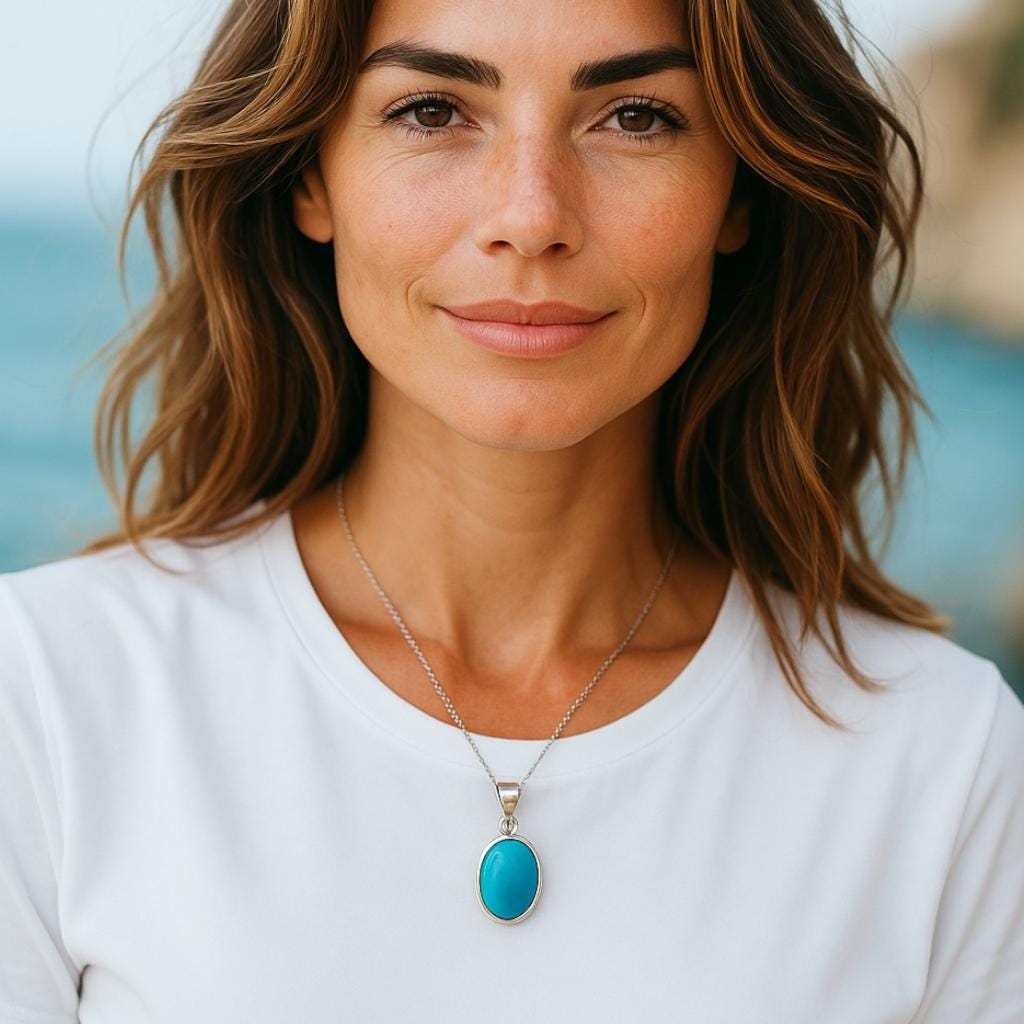 Whether you're looking to amplify your meditation practice, enhance your creative flow, or simply feel more grounded, this stunning silver turquoise pendant is a must-have accessory for the modern spiritual seeker. Treat yourself or gift it to a loved one for an extra special touch.
