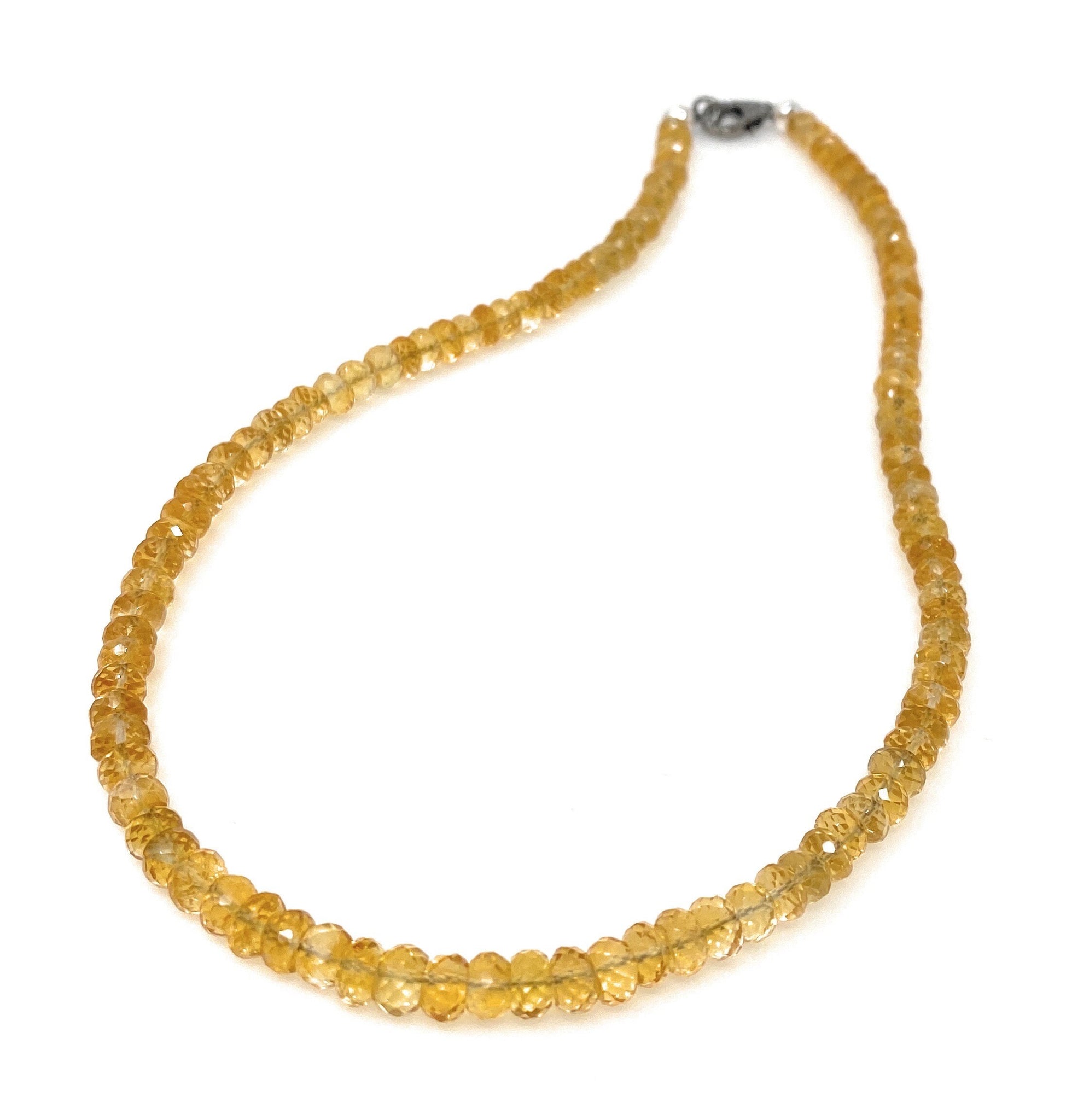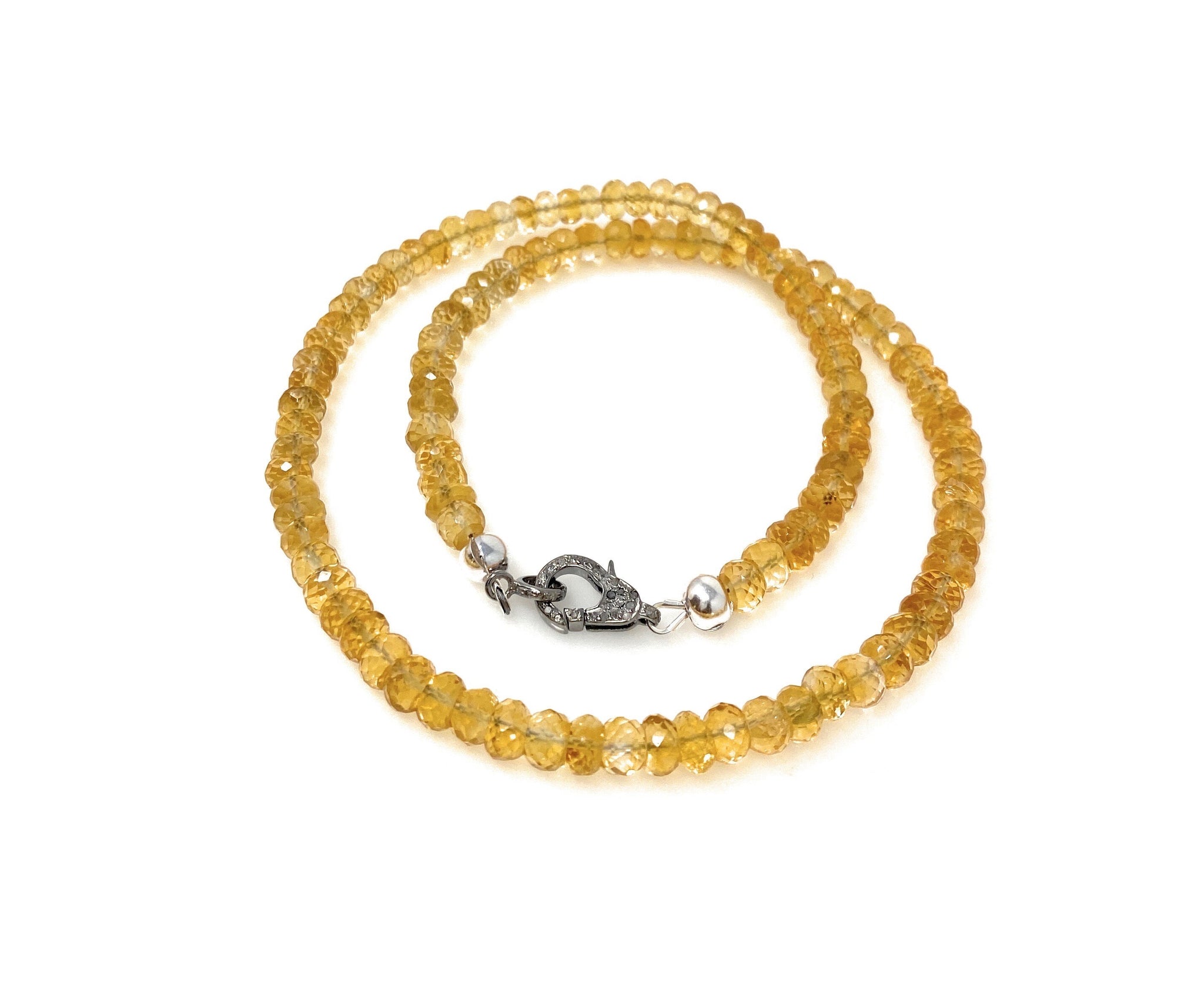16” Citrine Necklace with Pave Diamond Clasp, Spiritual Healing Gemstone Jewelry, Crystal Beaded Chakra Necklace, November Birthstone Gifts