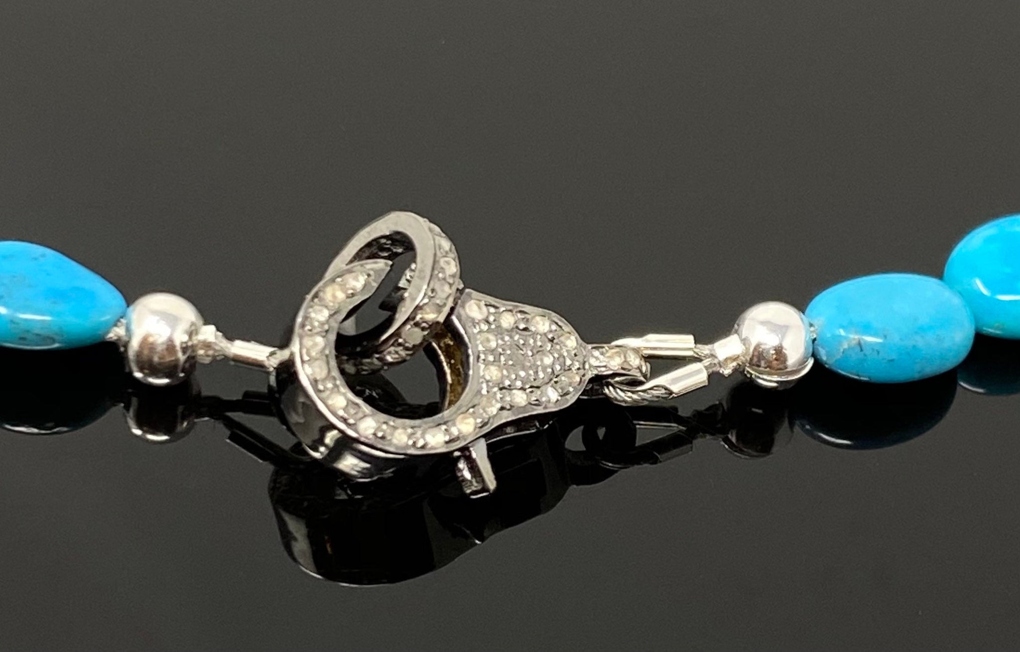 • Handcrafted with genuine turquoise beads and diamonds in Pave Setting
