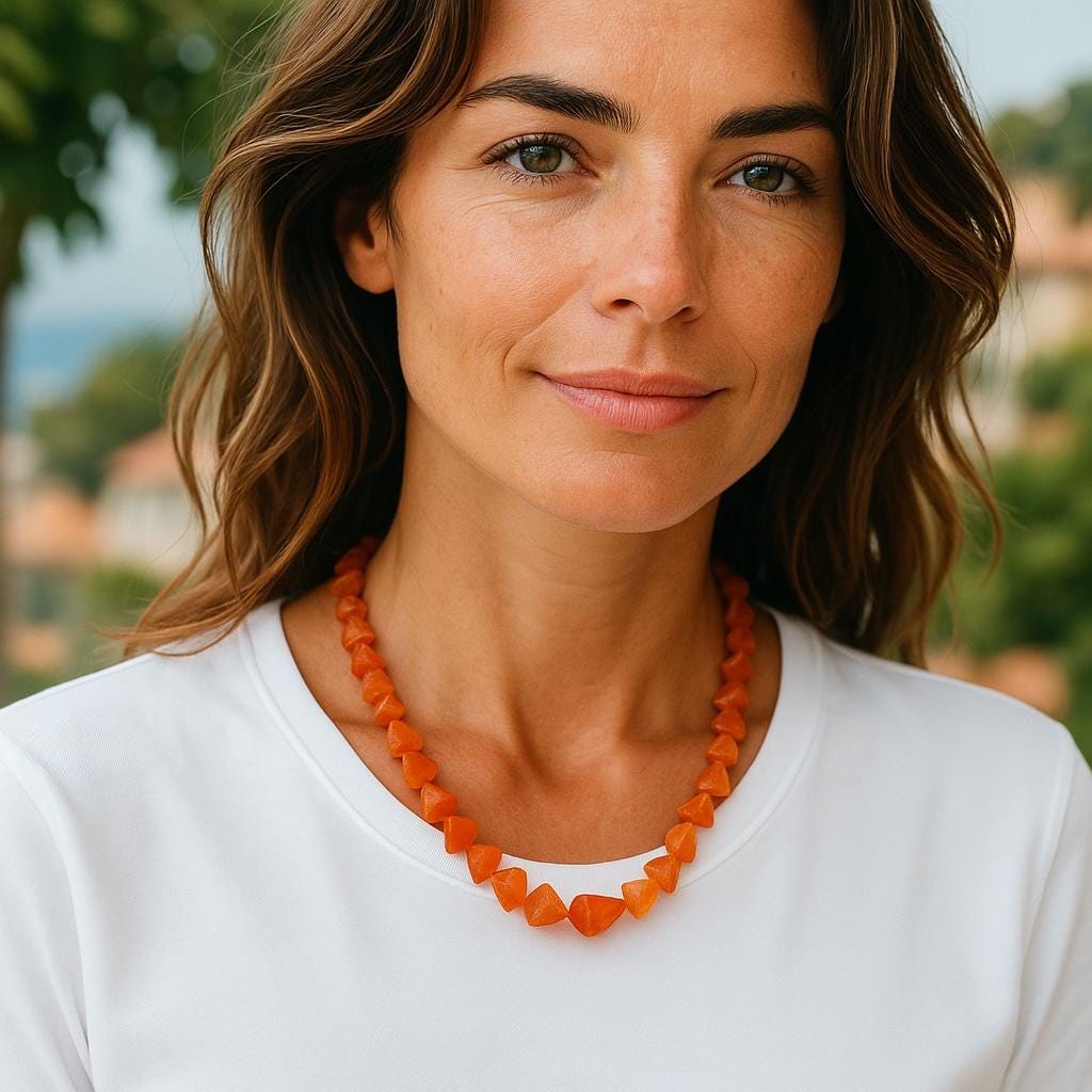 This natural carnelian necklace is more than just a beautiful accessory - it's a powerful tool for aligning your chakras and tapping into your inner radiance. The warm, fiery hues of the carnelian stone are said to stimulate creativity, courage, and confidence, while the pave diamond clasp adds a touch of undeniable elegance. Wear this necklace as a daily reminder to embrace your spiritual side and let your true light shine.