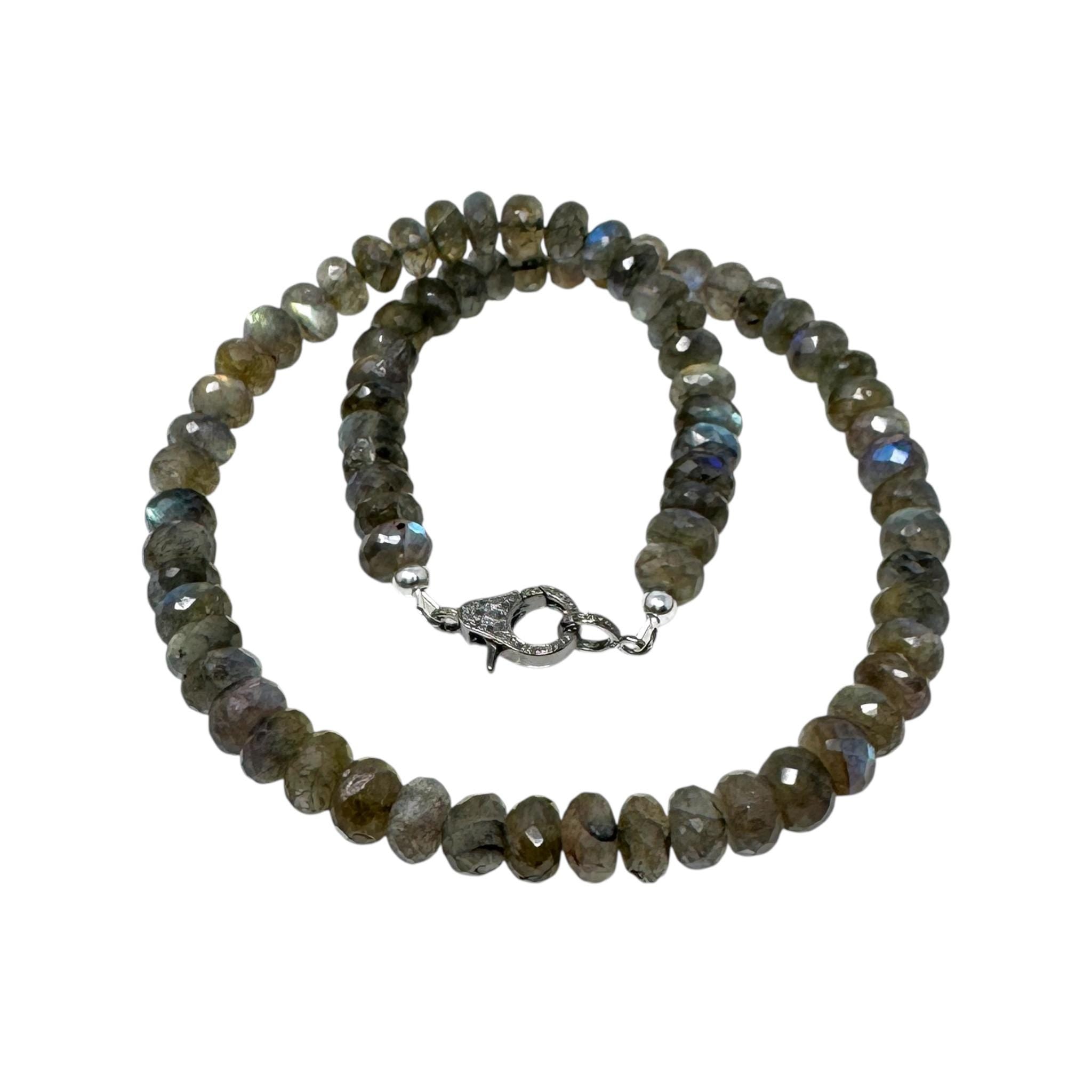 Discover the captivating beauty and transformative powers of Labradorite with this stunning beaded gemstone necklace. Crafted with genuine Labradorite stones and a dazzling pave diamond clasp, this spiritual jewelry piece is a must-have for any crystal enthusiast or style connoisseur.