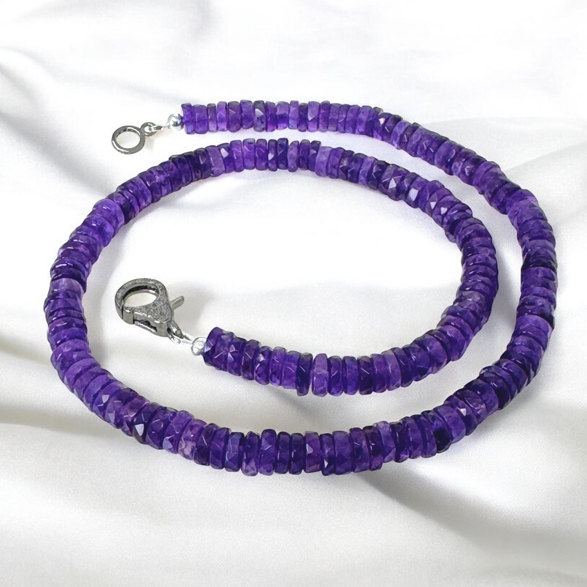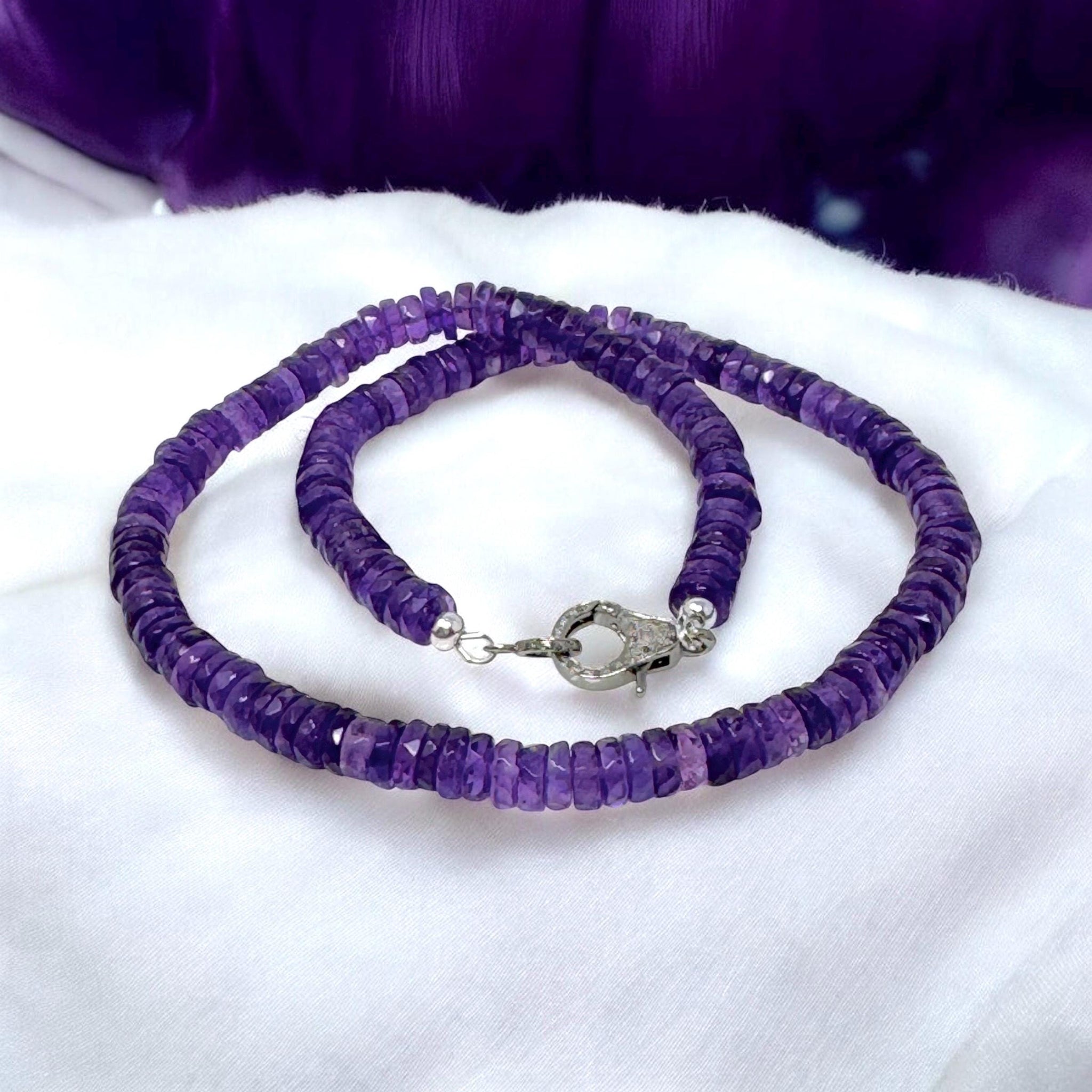 Natural Amethyst Beaded Necklace with Genuine Pave Diamonds in the Clasp.