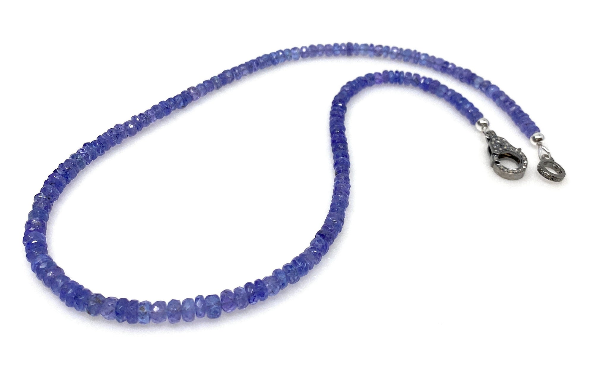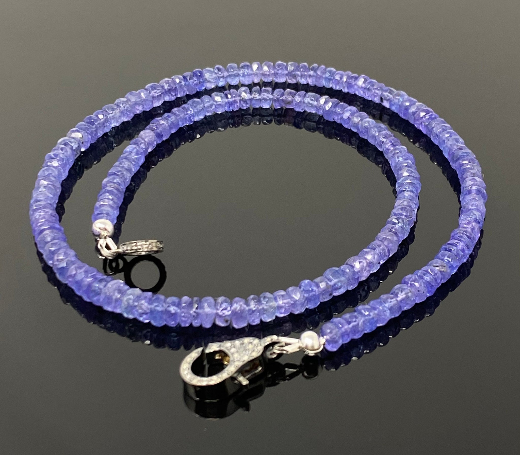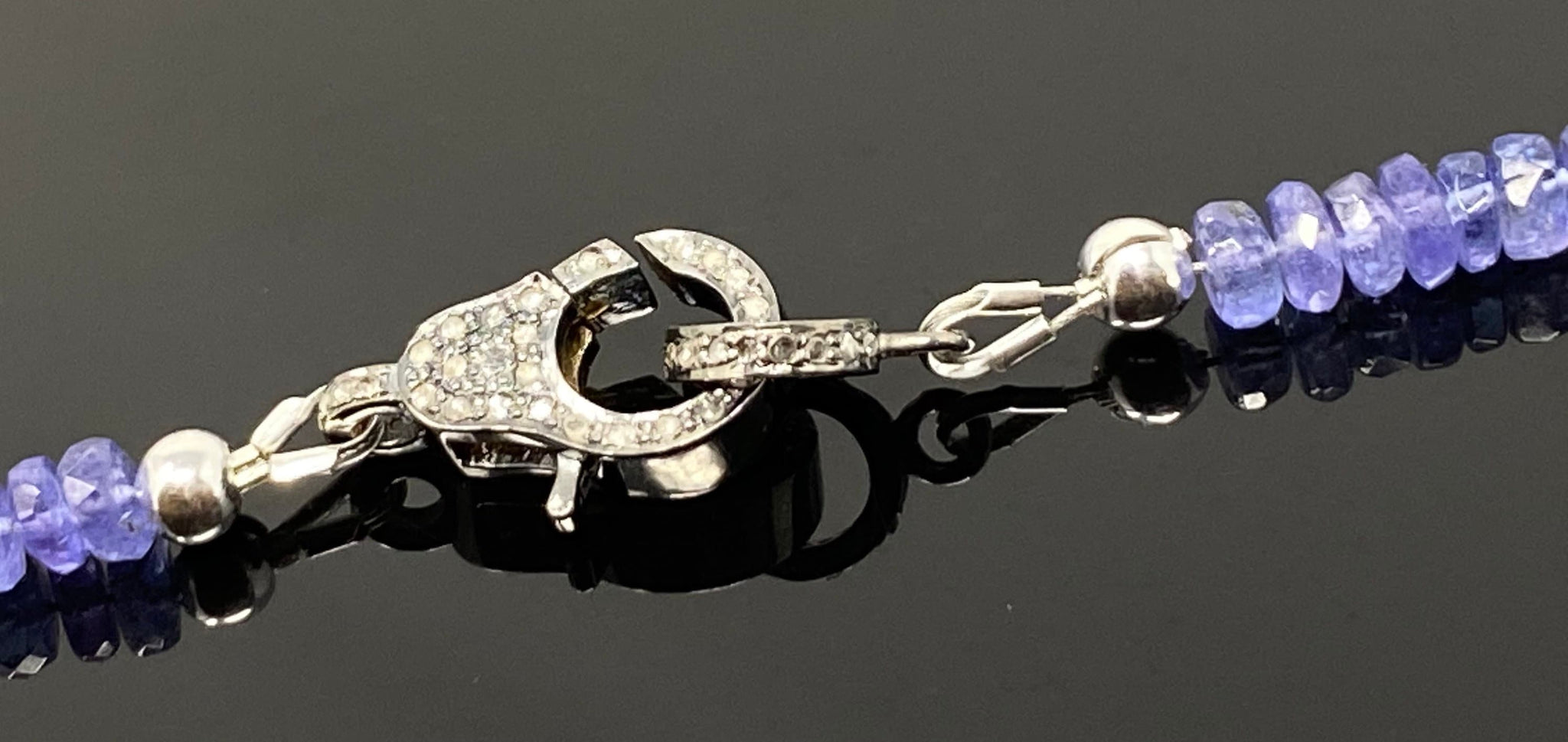Natural Tanzanite Faceted AAA+ Quality Beaded Necklace with Genuine Pave Diamonds in the Clasp.