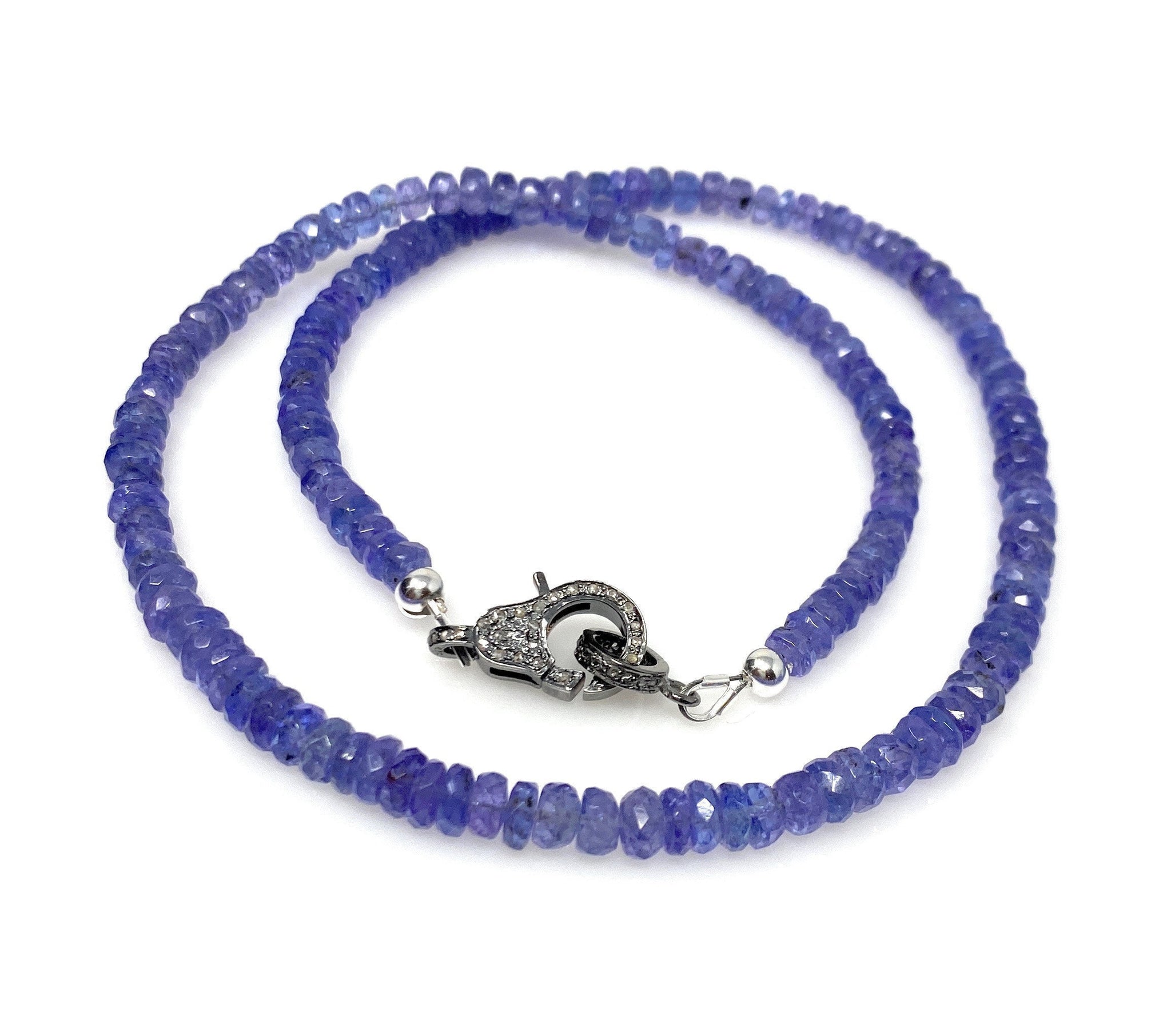 This Necklace is Handmade by using Faceted Natural Tanzanite Gemstone Beads and Genuine Pave Diamond Clasp .