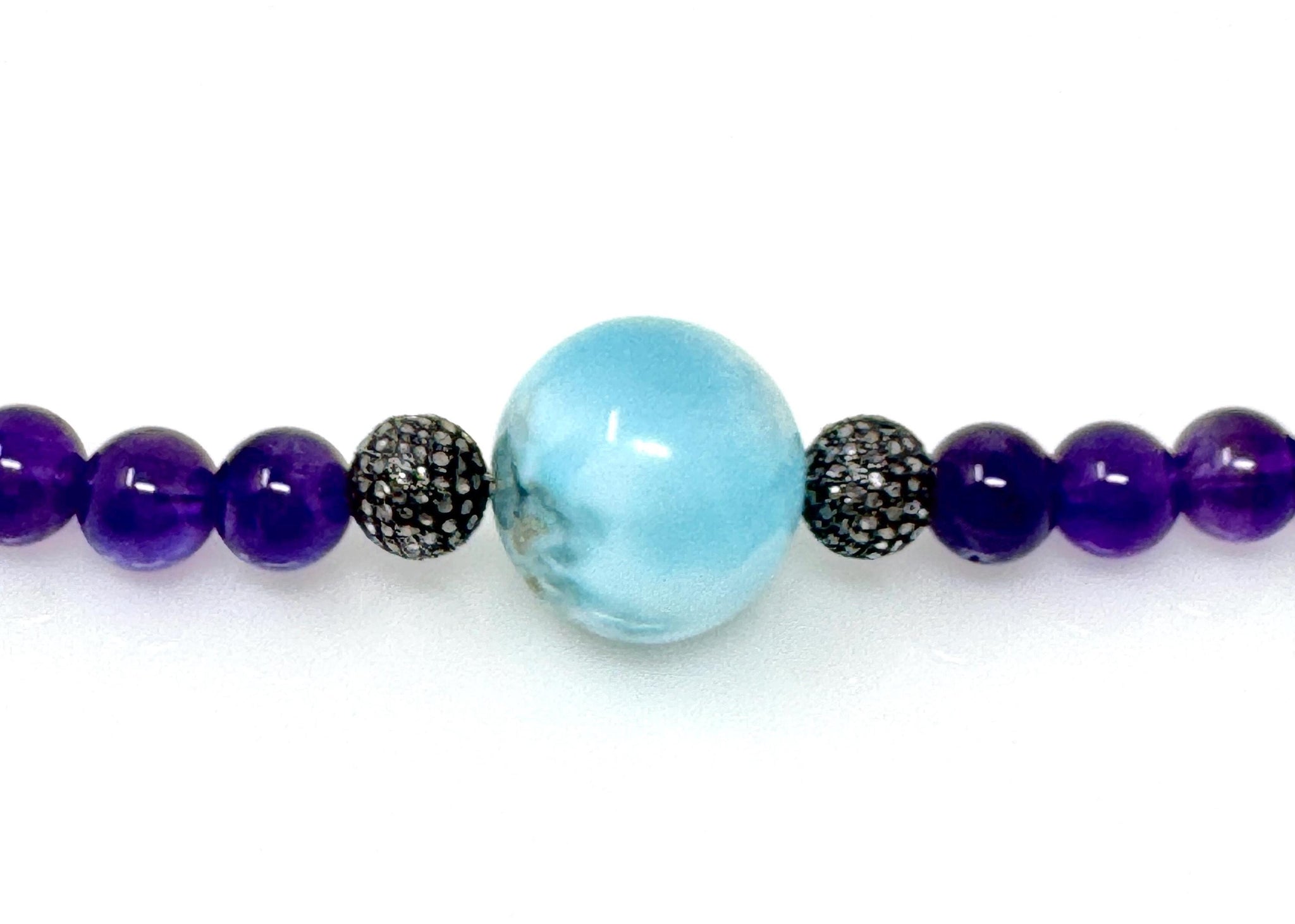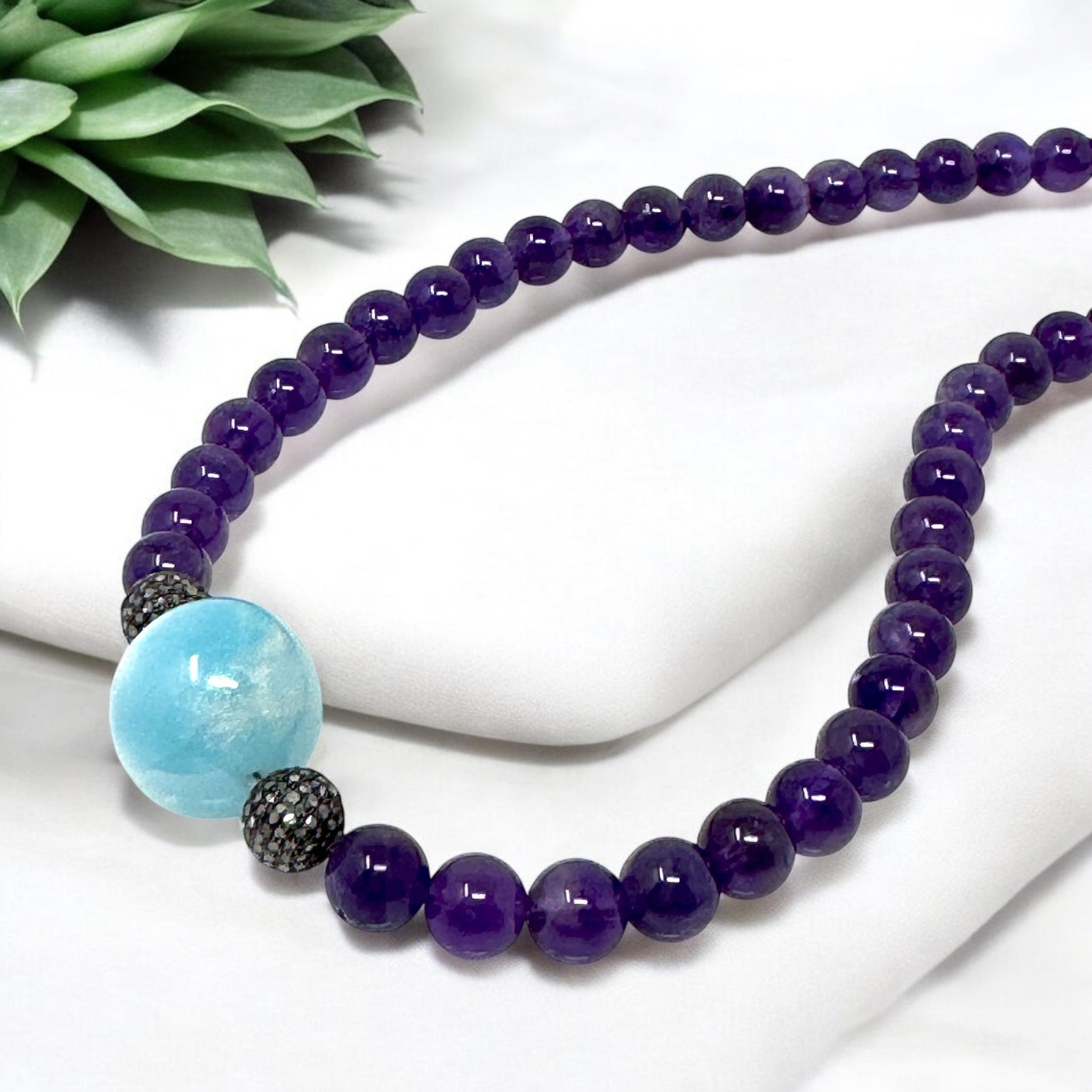 Unlock the power of transformation with this stunning Handmade Beaded Amethyst and Larimar Pave Diamond Necklace.
