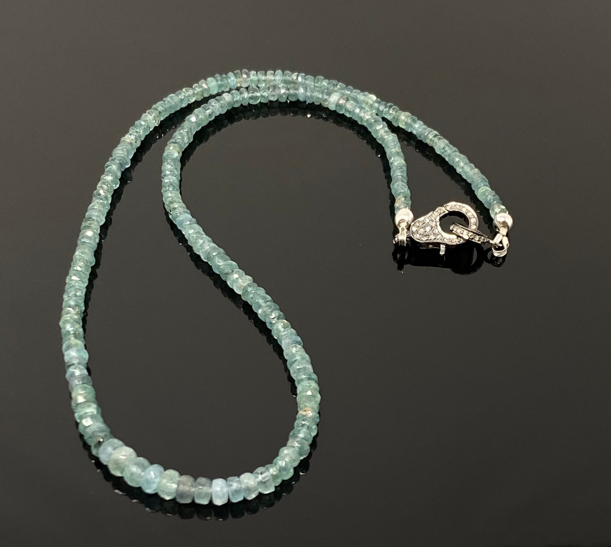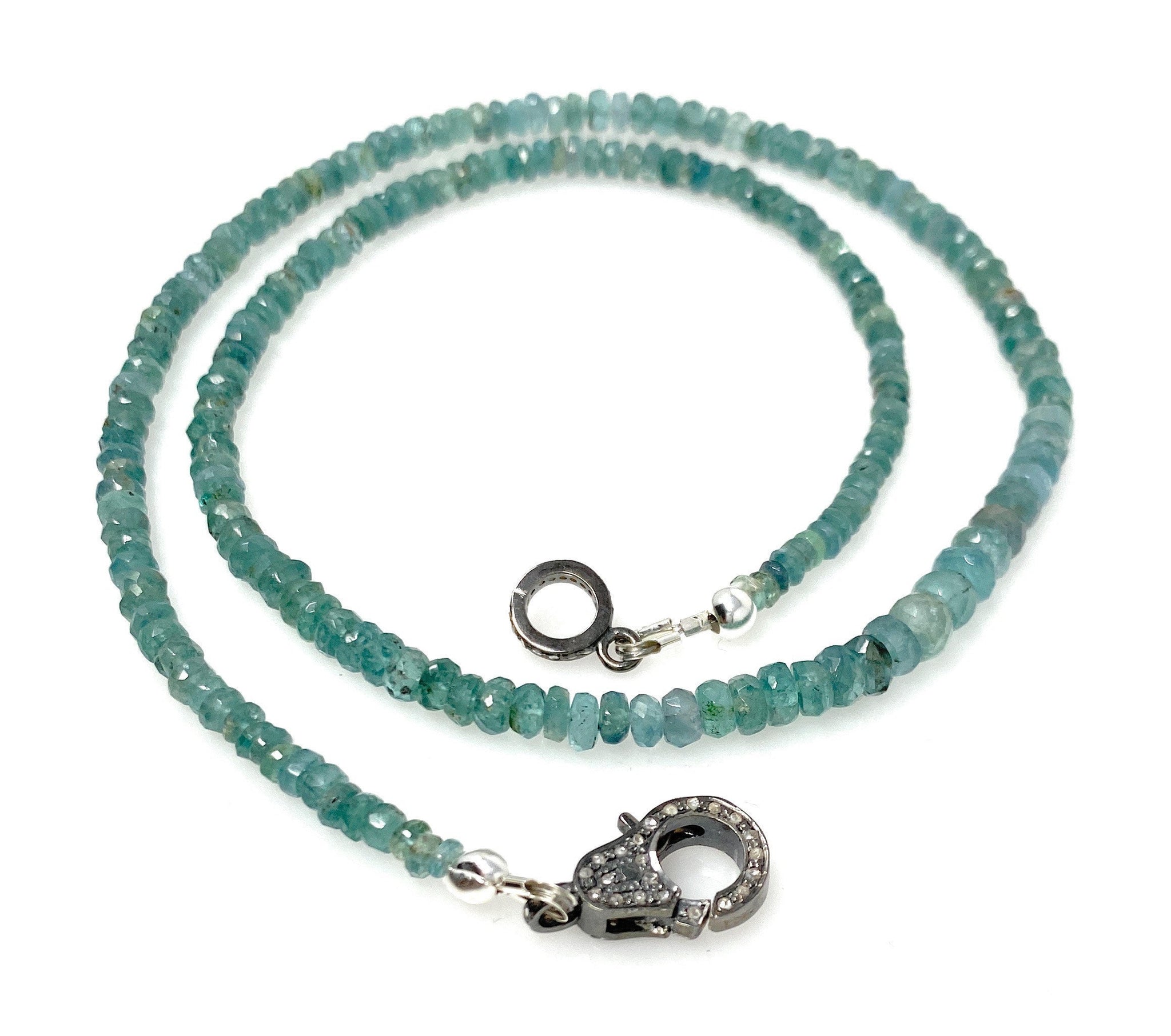 Blue Green Tourmaline Indicolite Necklace with Pave Diamond Clasp, Natural Blue Green Tourmaline Gemstone Necklace