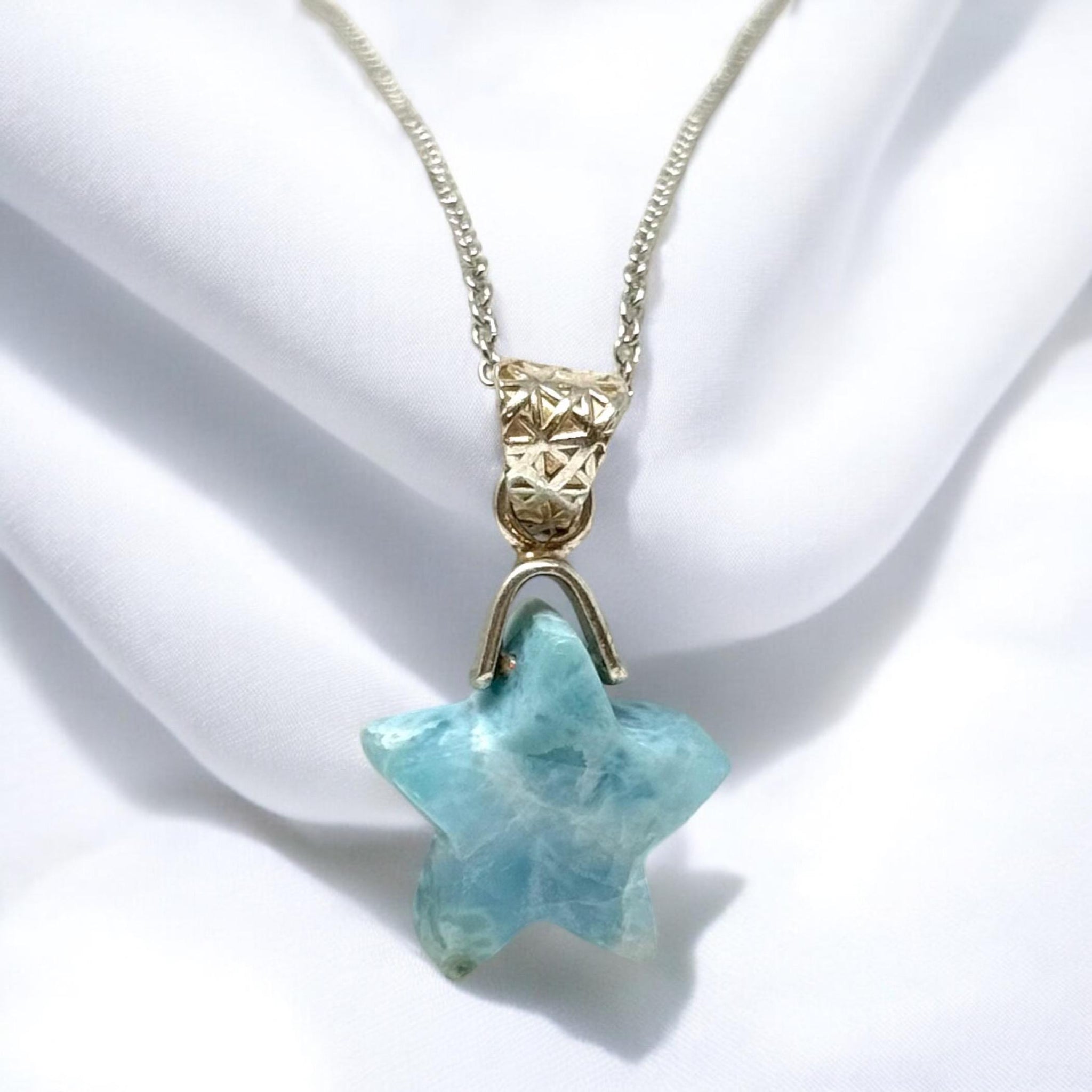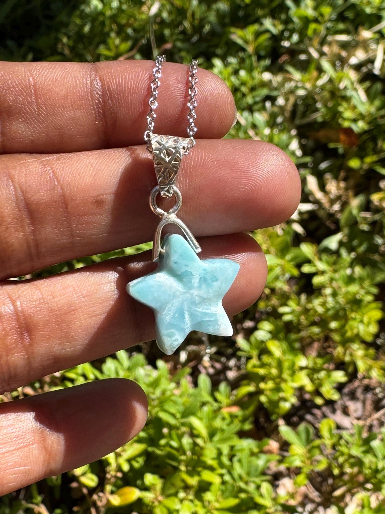 Larimar Star Shape Handmade Gemstone Sterling Pendant Necklace