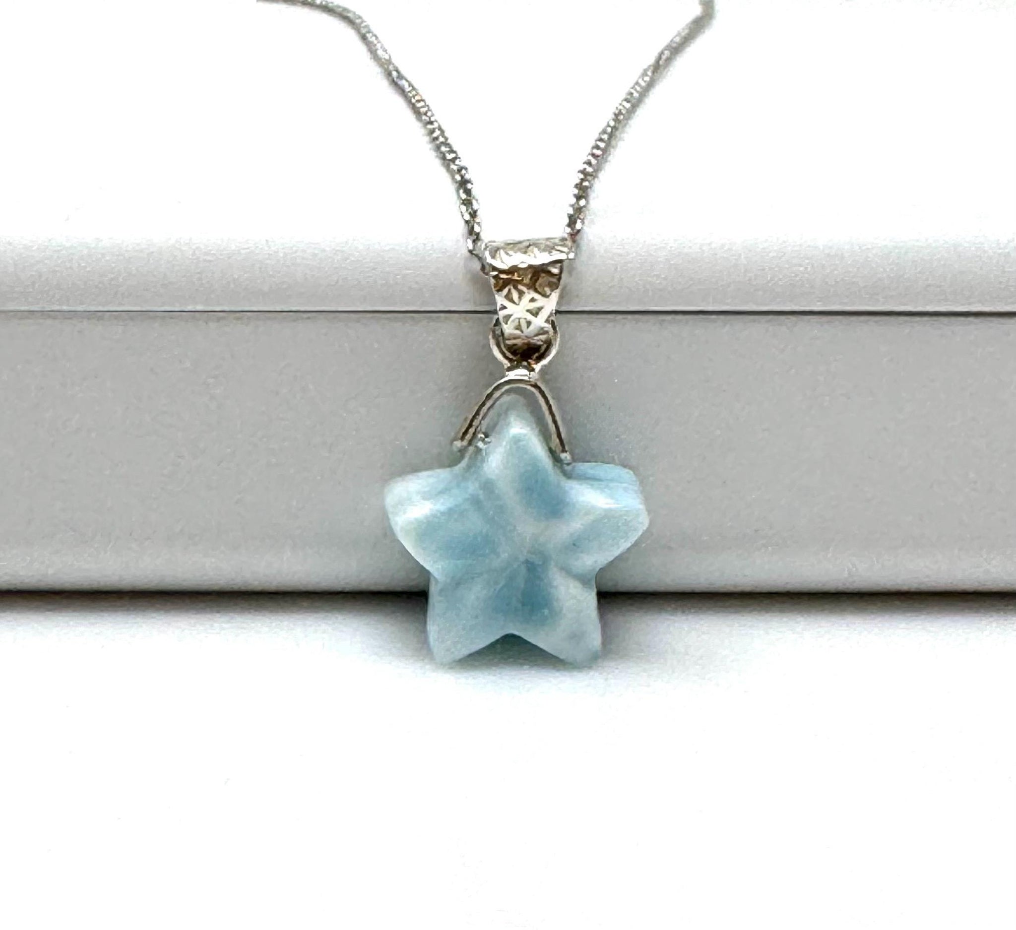 Larimar Gemstone Necklace, Atlantis Healing Stone Star Shape Pendant Necklace, Dominican Republic Larimar Jewelry Gifts, 1.30”x0.75”