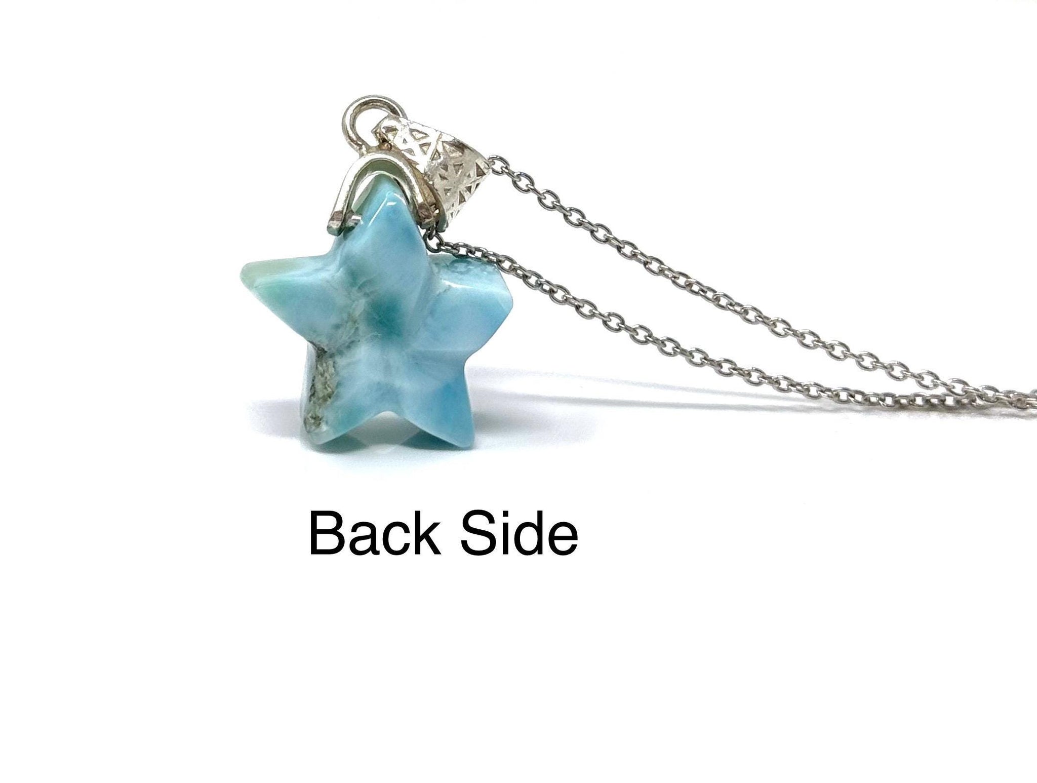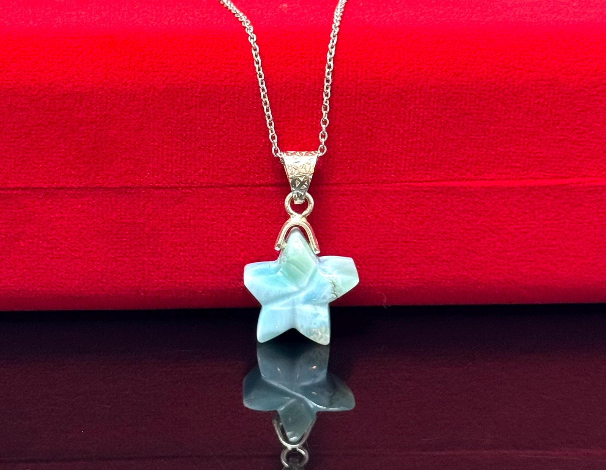 Larimar Gemstone Necklace, Hand Carved Larimar Star Necklace, Bohemian Jewelry Gifts, Dominican Republic Larimar Necklace, 1.30” x 0.80”