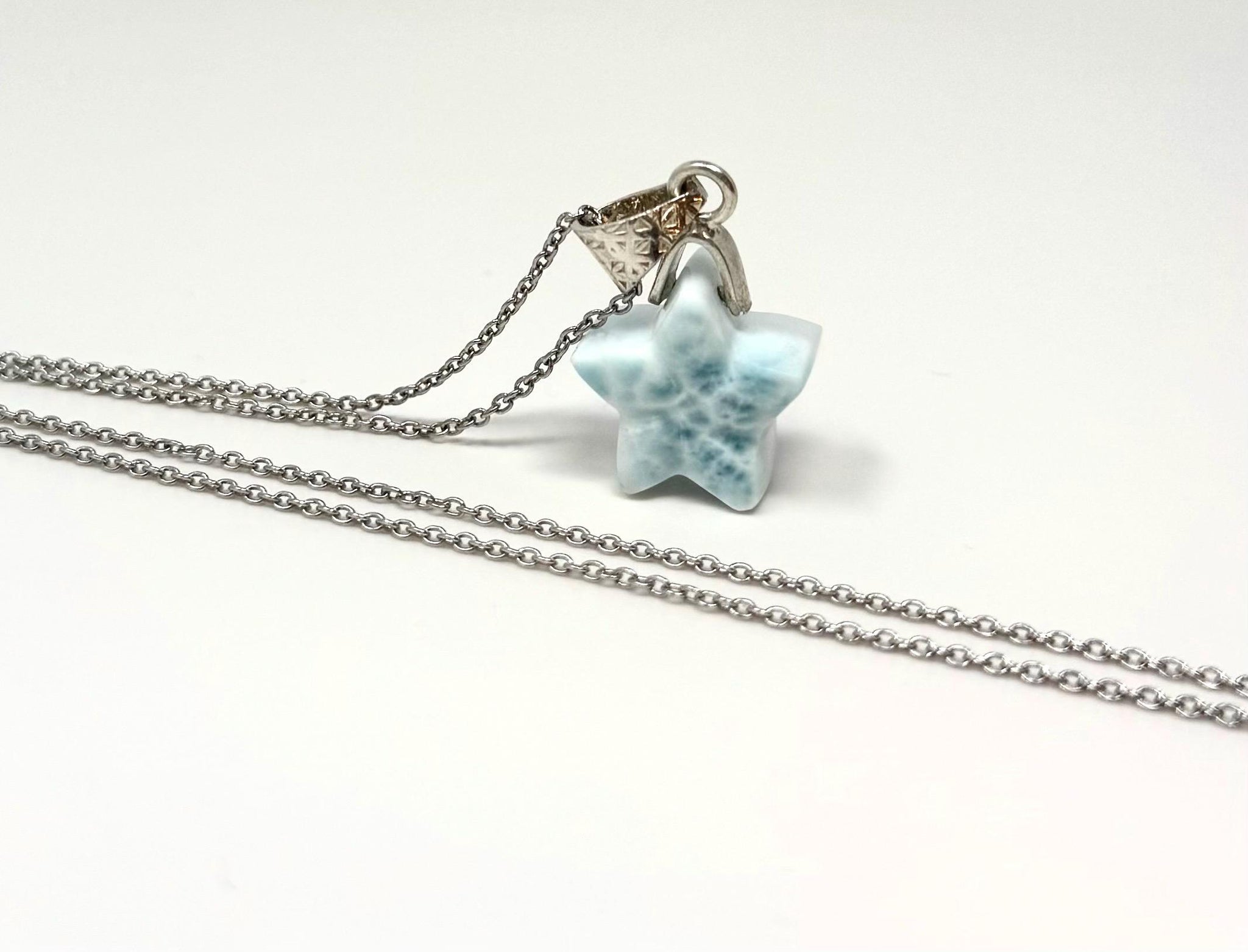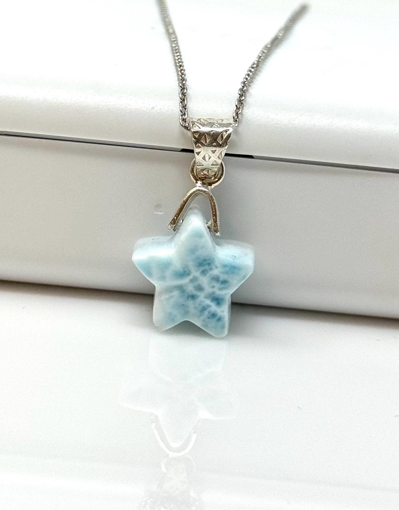 Larimar Gemstone Necklace, Light Blue Larimar Star Necklace, Bohemian Jewelry Gifts, Dominican Republic Larimar Necklace, 1.25” x 0.60”