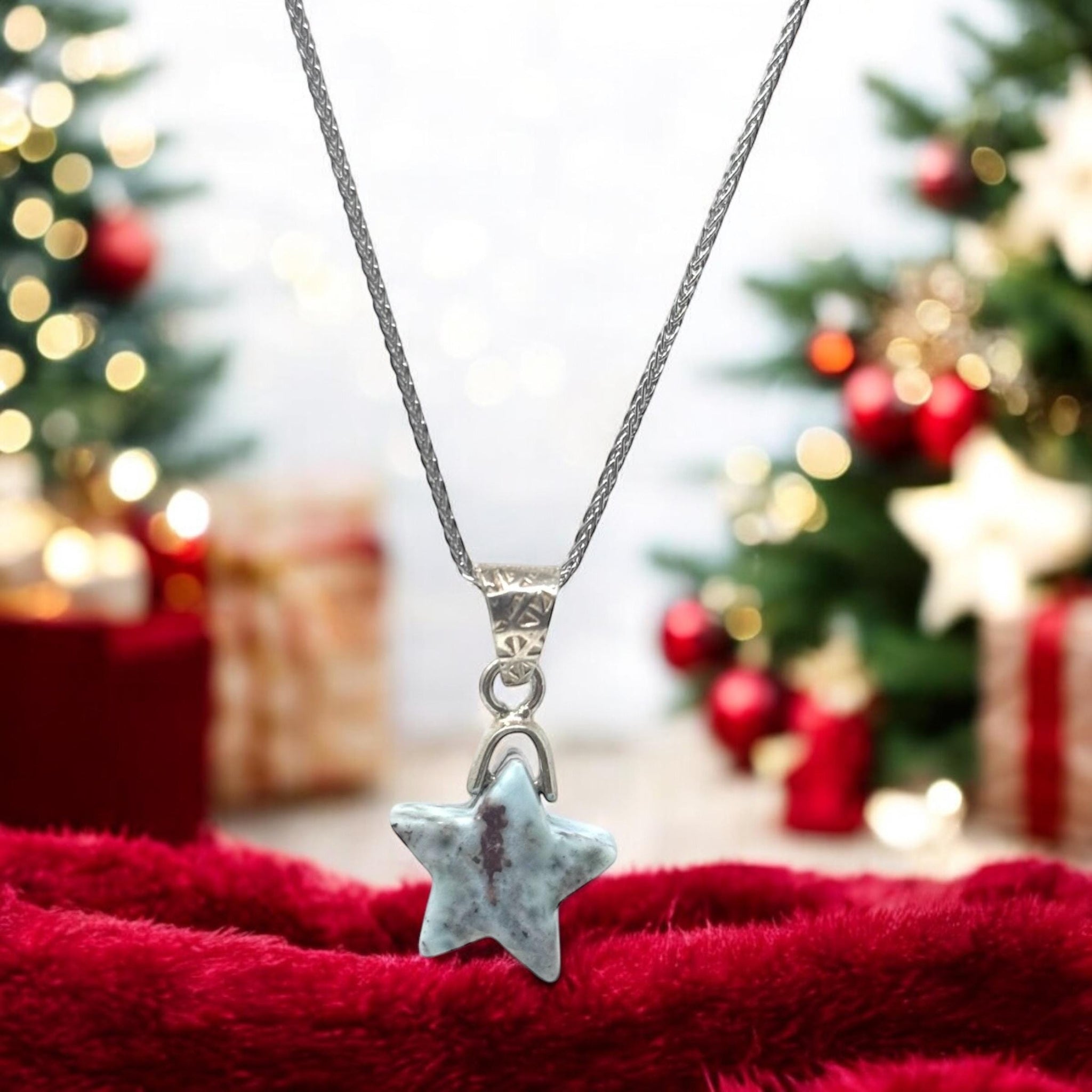 Larimar Star Shape Handmade Gemstone Sterling Pendant Necklace