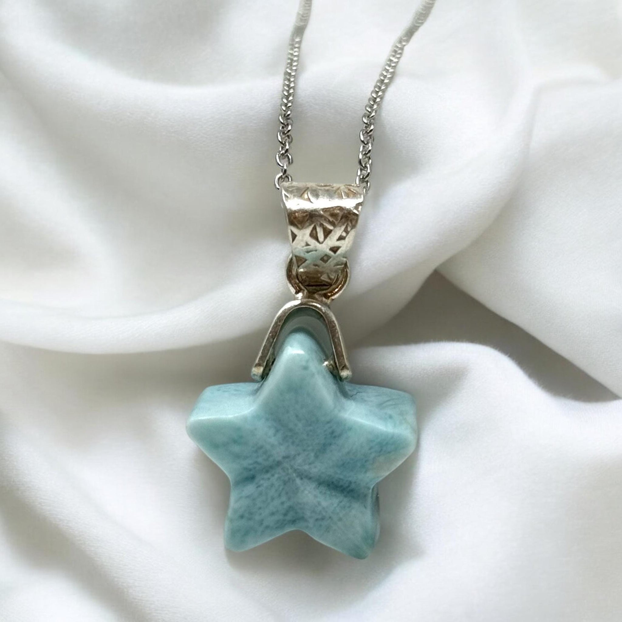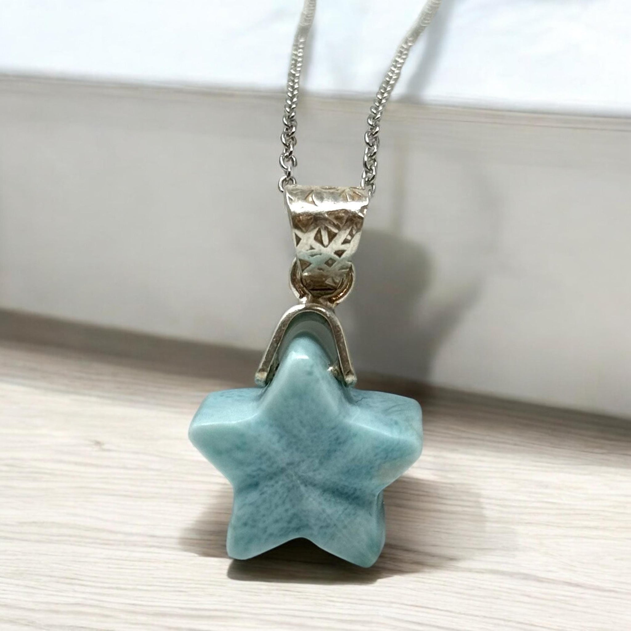 Larimar Star Shape Handmade Gemstone Sterling Pendant Necklace