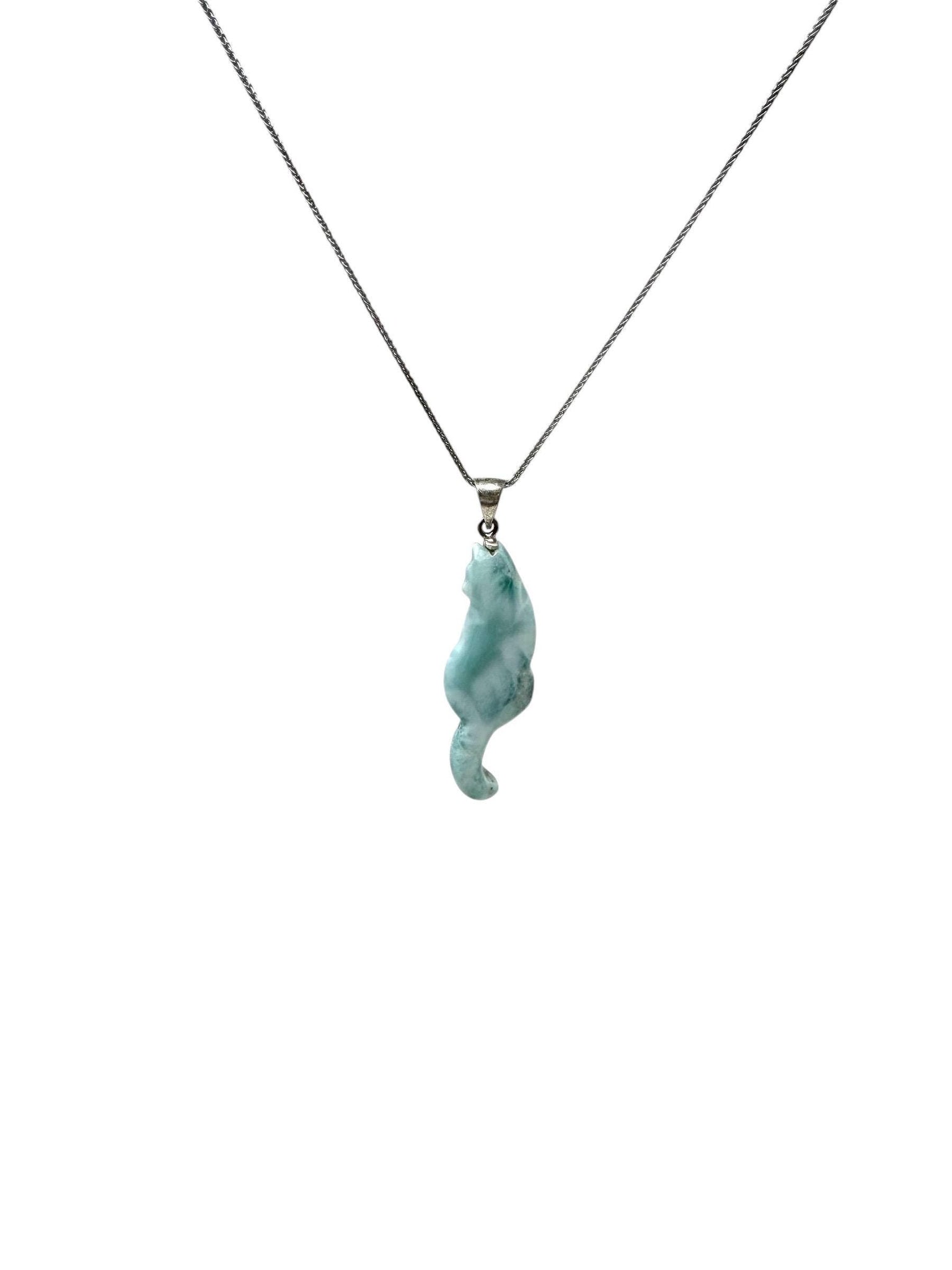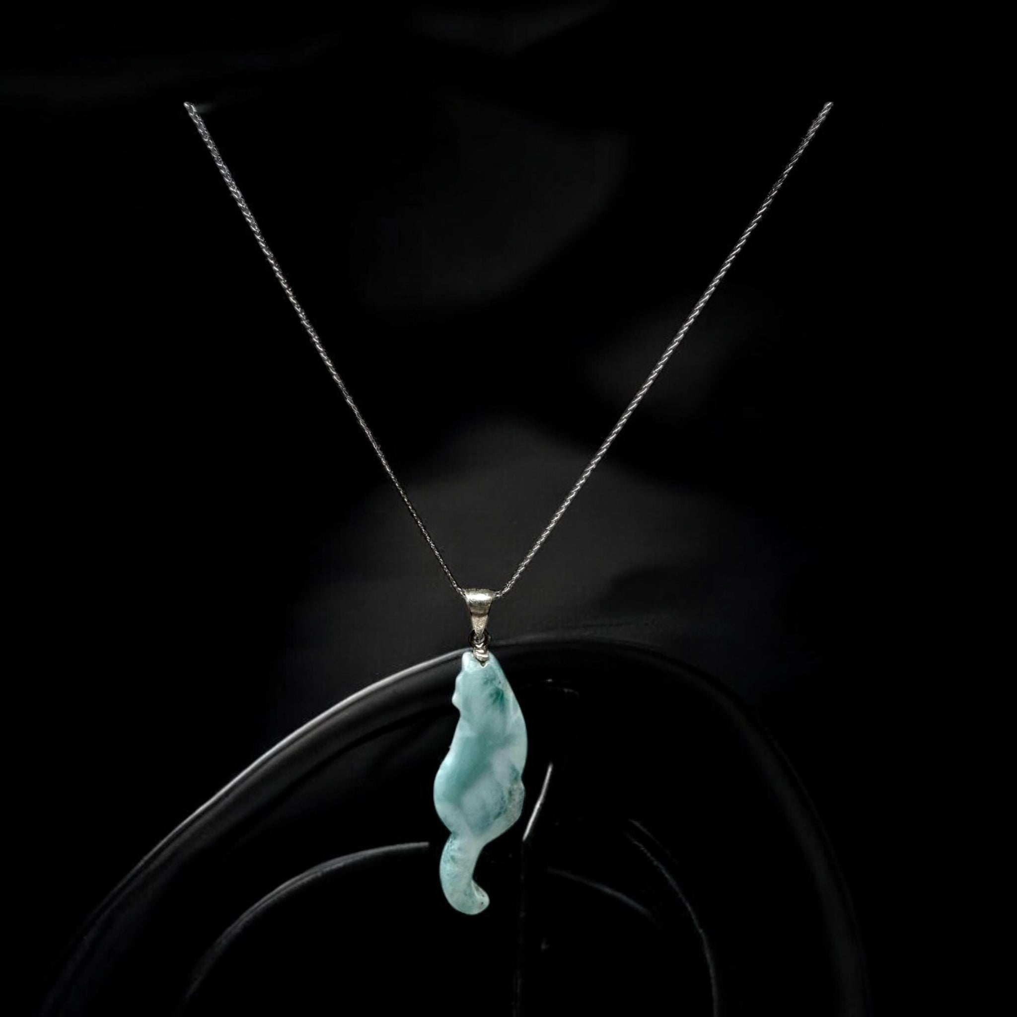 Reversible Larimar Gemstone Sterling Silver Cat Shape Pendant Necklace at Wholesale Price.