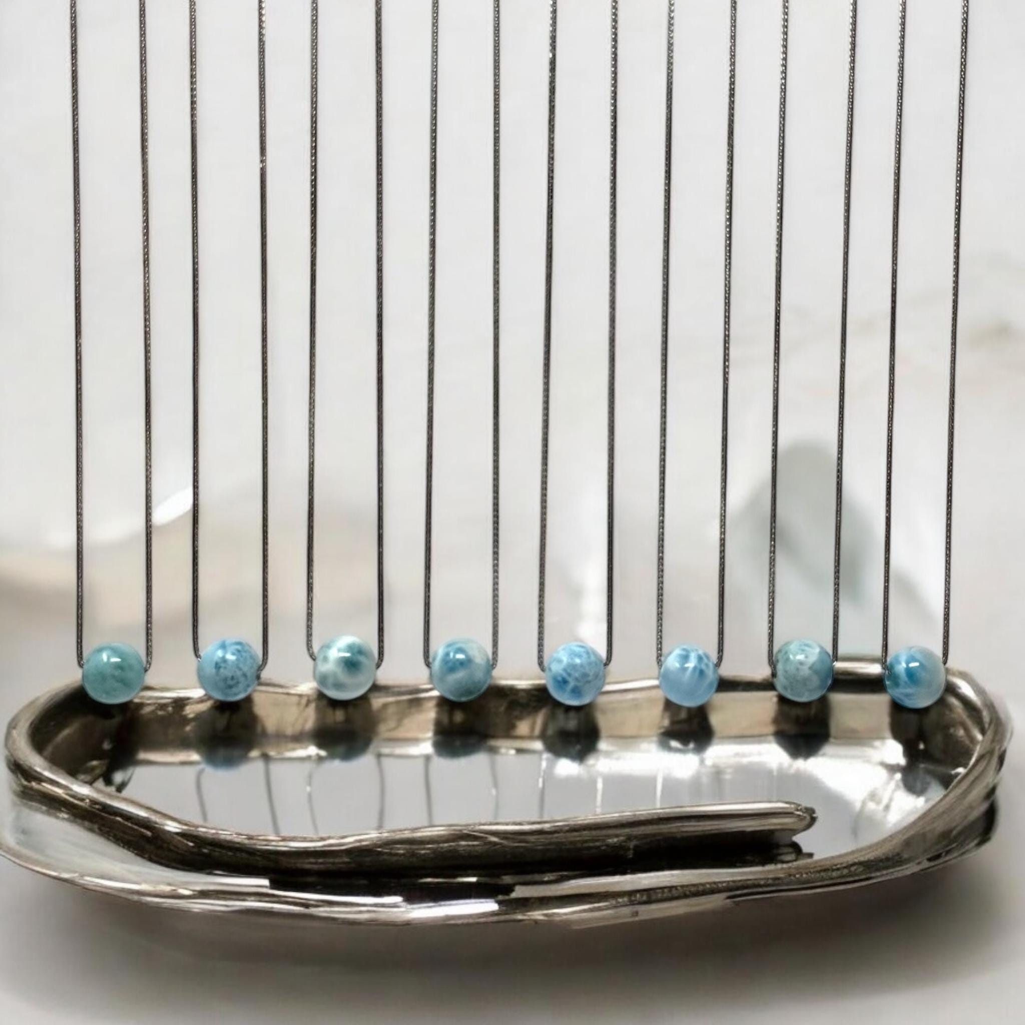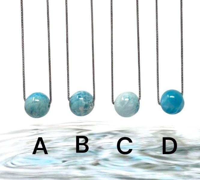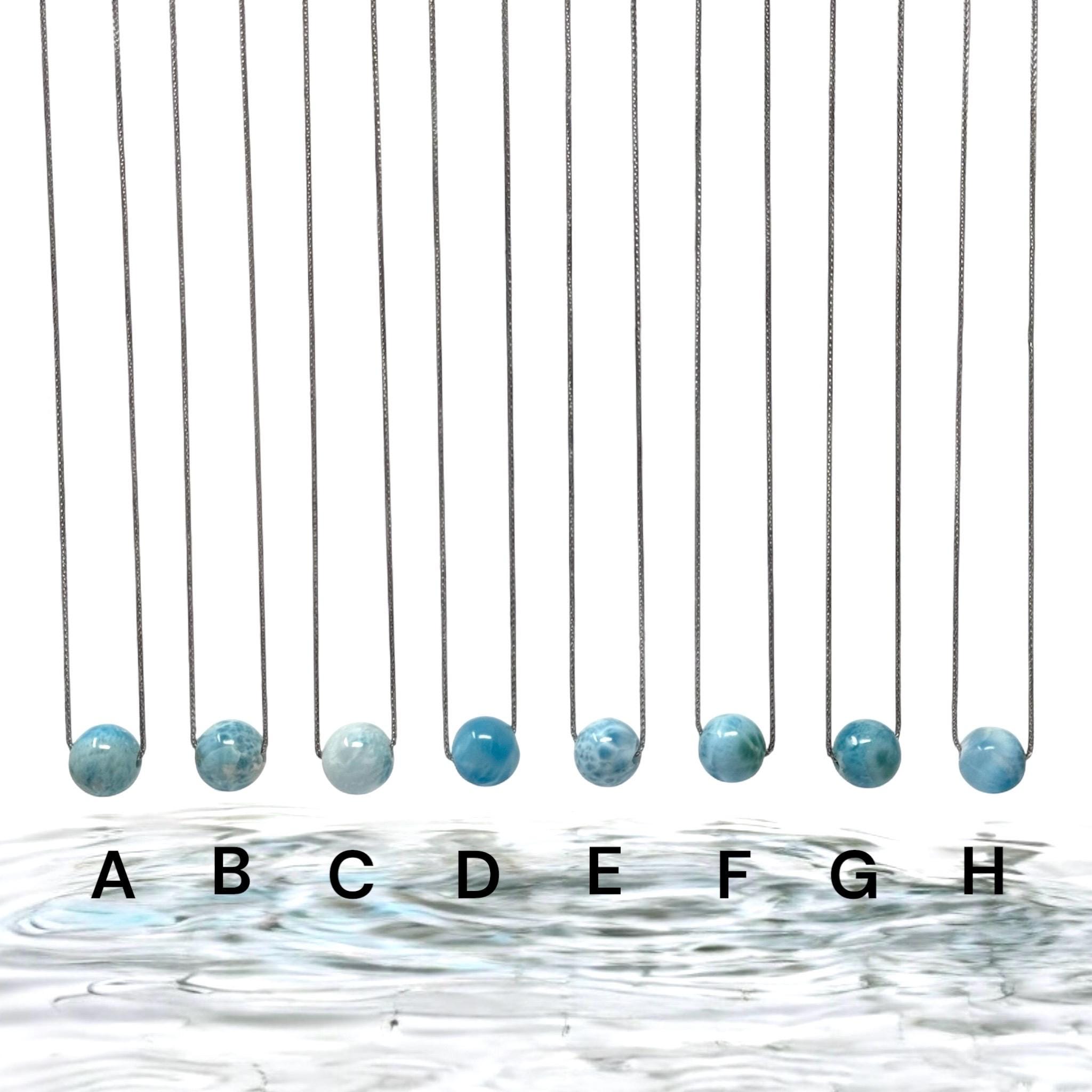 Genuine Natural Dominican Republic Trendy Sphere Bead Ball Larimar Gemstone Necklace.