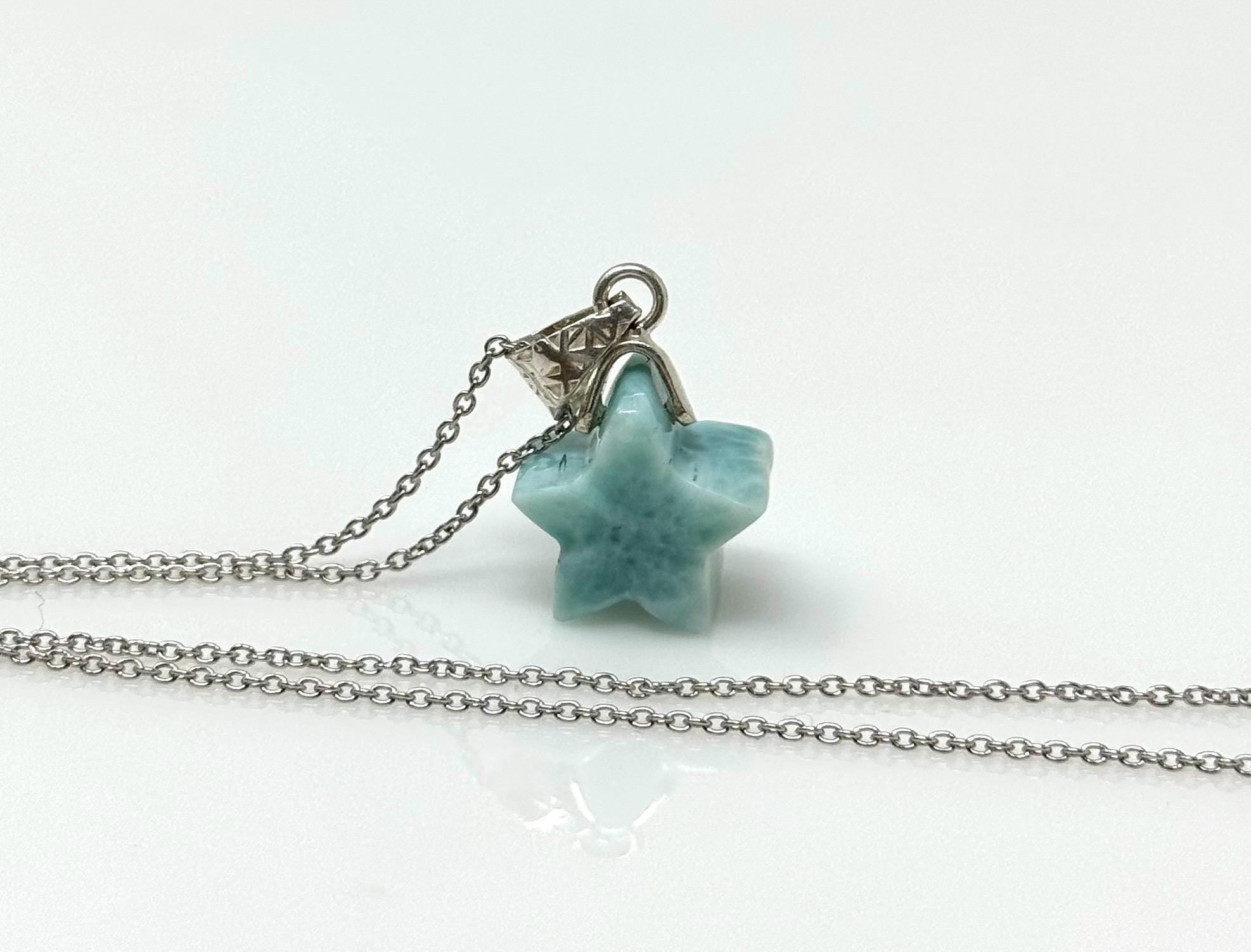 Larimar Necklace, Atlantis Stone, Healing Stone, Silver Star Bohemian Jewelry, Dominican Republic Larimar Jewelry Gifts, 1.20”x0.60”
