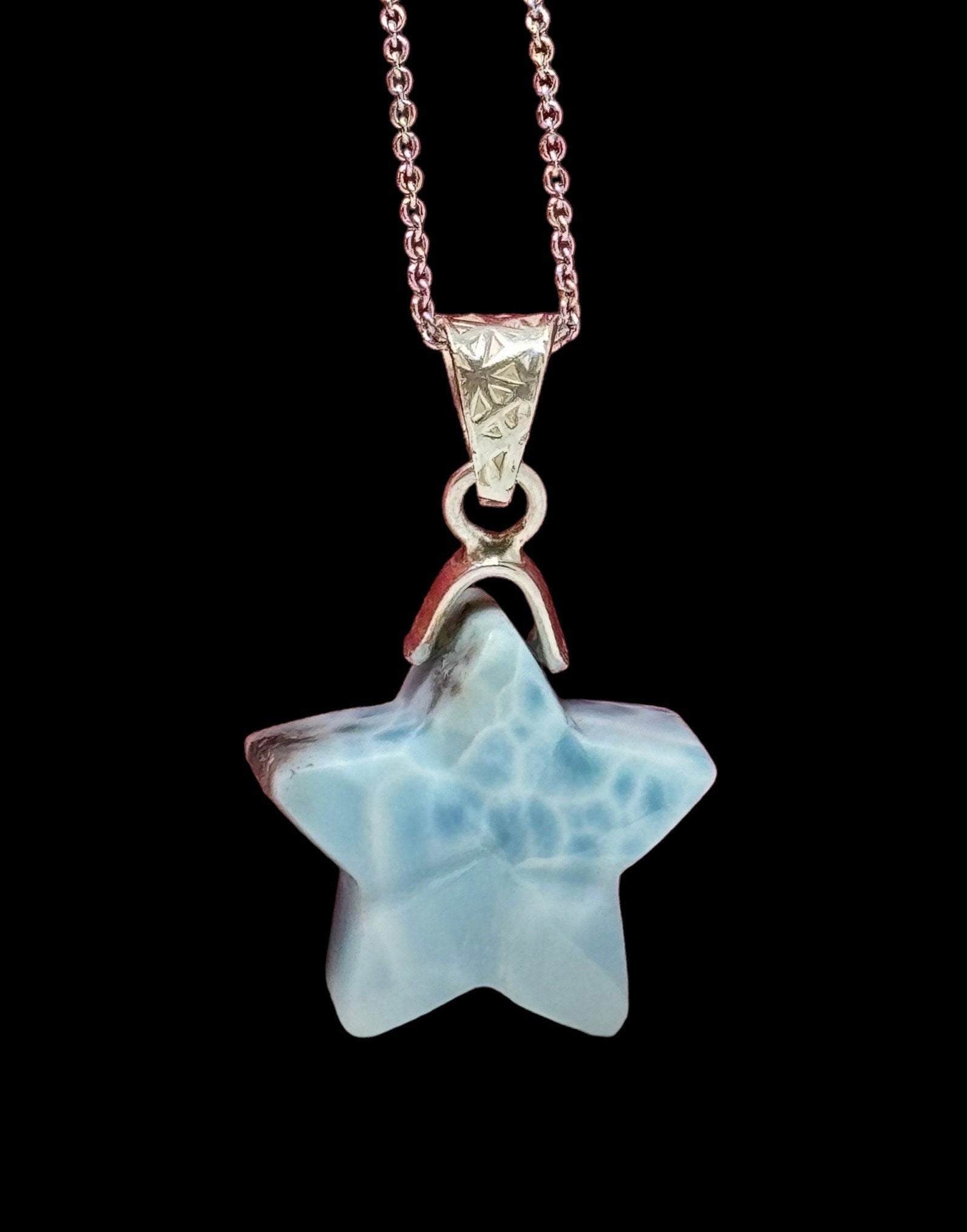 Larimar Star Necklace , Sterling Silver Hand Carved Larimar Pendant Necklace, Bohemian Jewelry, Natural Dominican Republic Larimar Pendant
