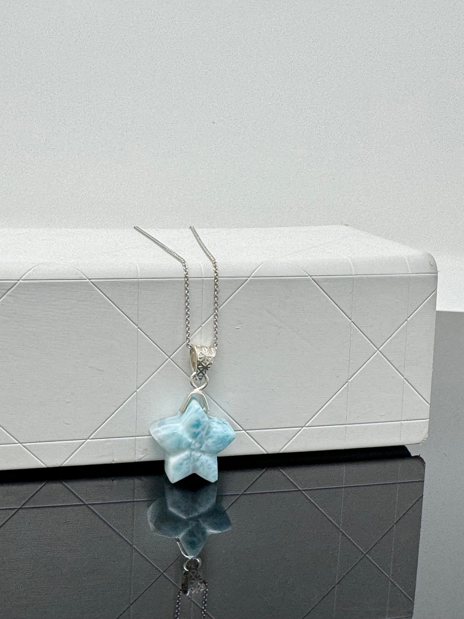 Larimar Star Shape Handmade Gemstone Sterling Pendant Necklace