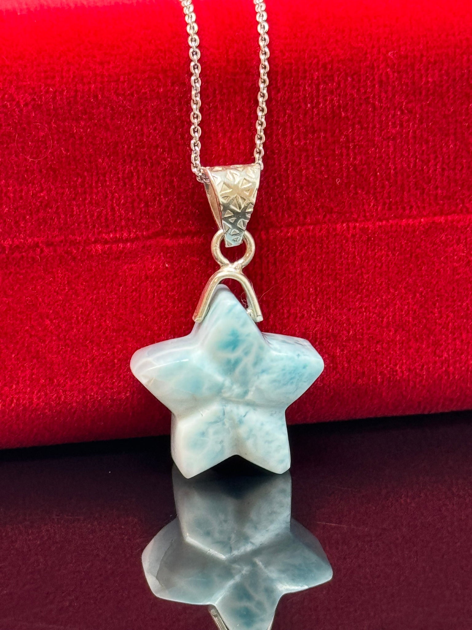 Larimar Star Necklace , Sterling Silver Hand Carved Larimar Pendant Necklace, Bohemian Jewelry, Natural Dominican Republic Larimar Pendant