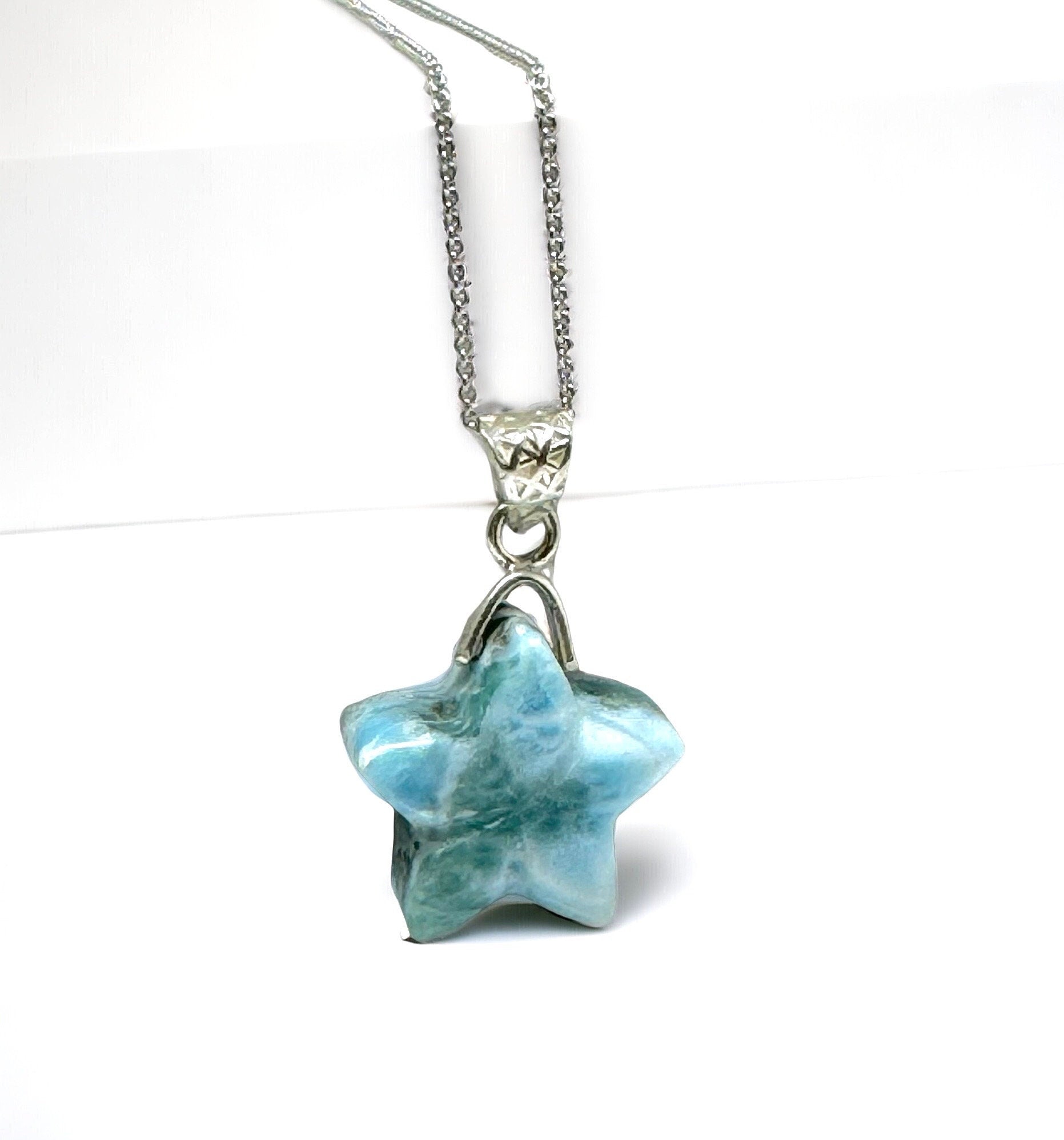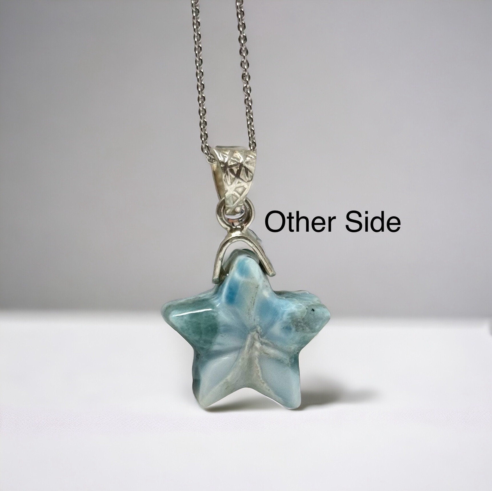 Larimar Star Pendant Necklace , Sterling Silver Hand Carved Larimar Necklace, Bohemian Jewelry, Natural Dominican Republic Larimar Pendant