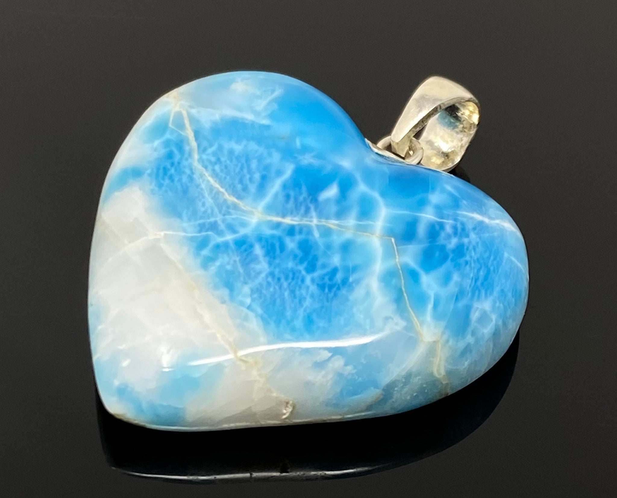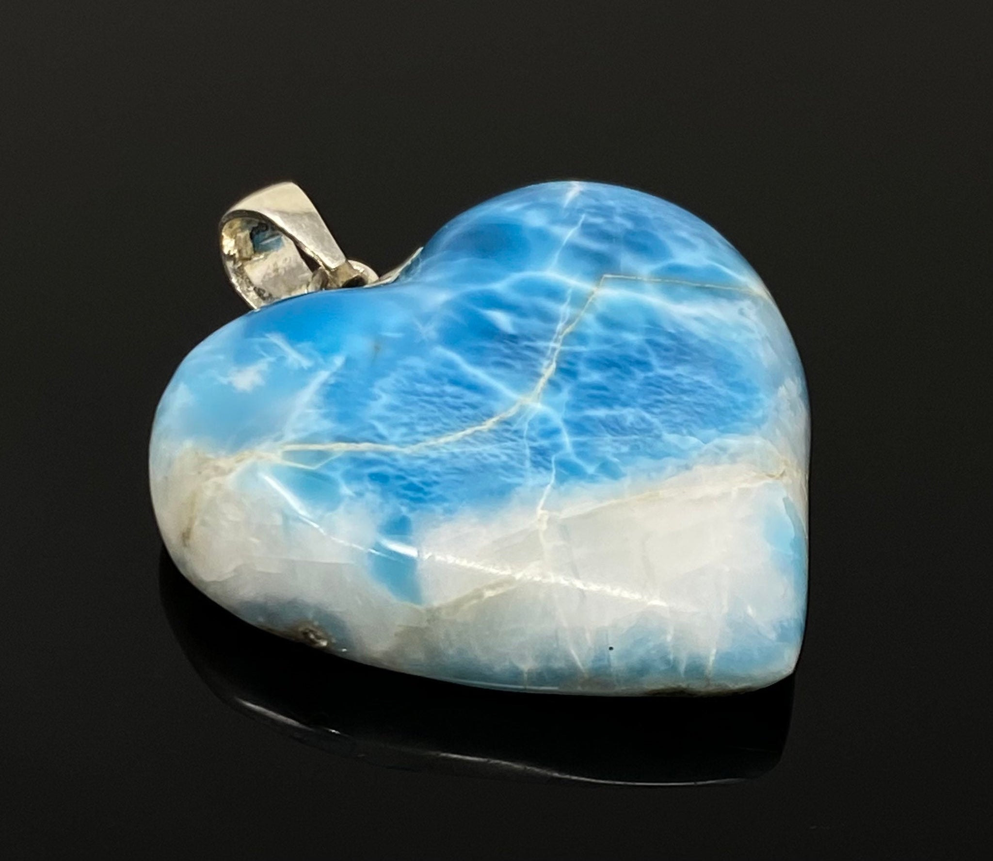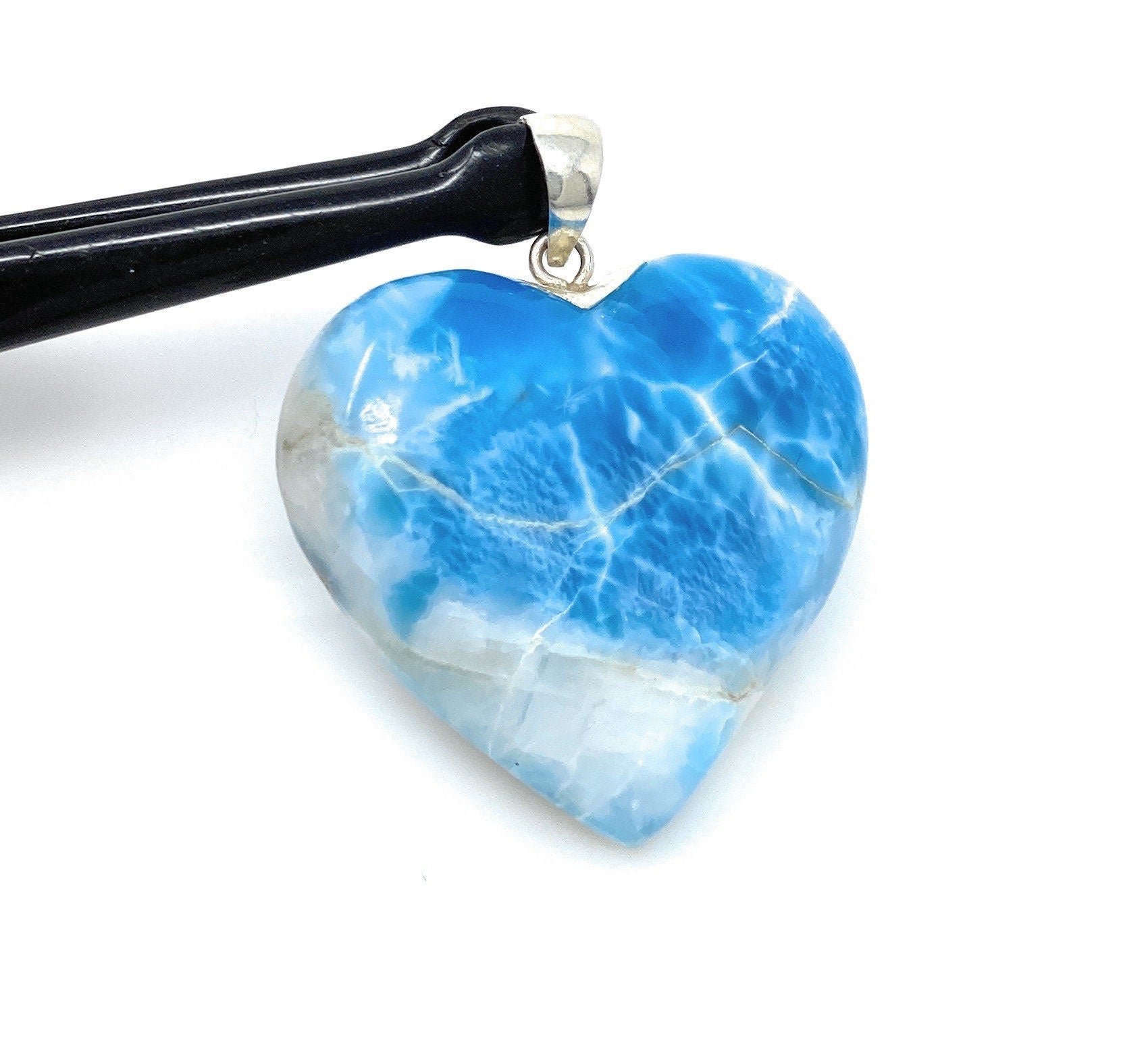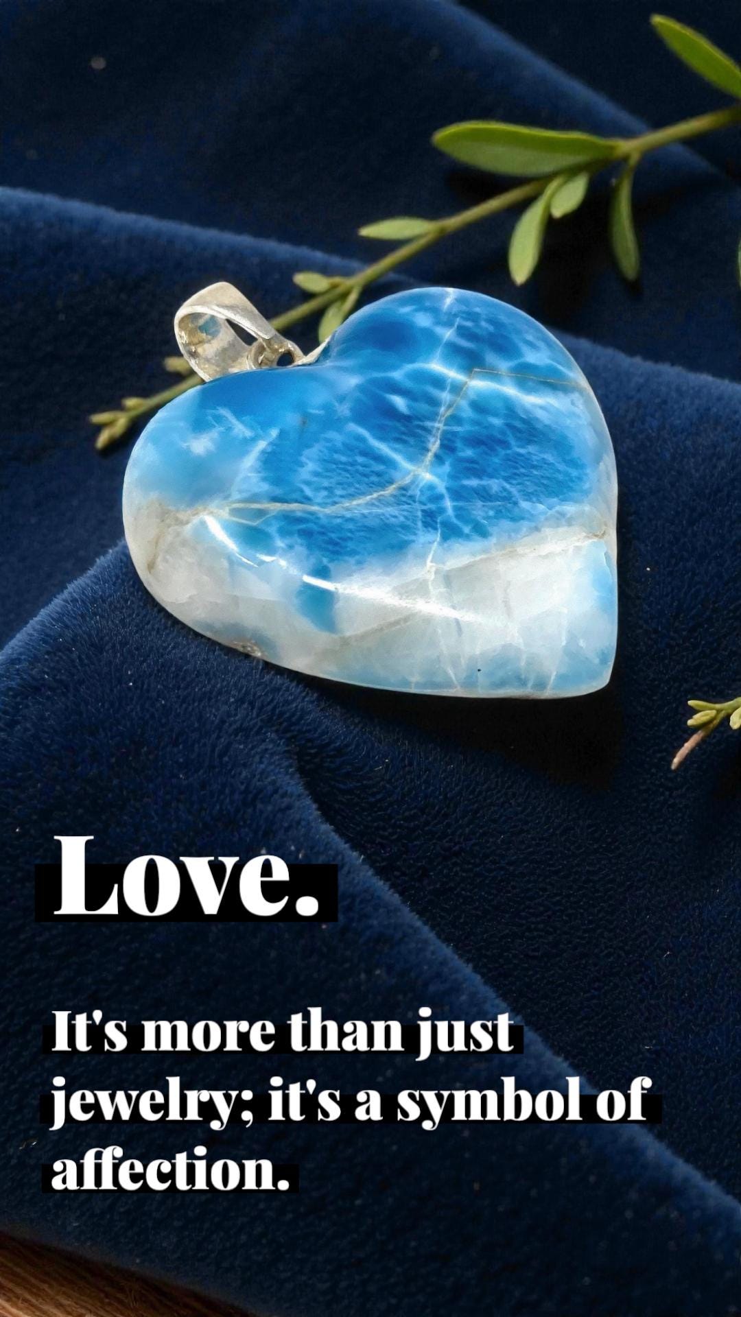 Carry the calming energy of the ocean with this Large Natural Larimar Heart Pendant from Akstar Gems.