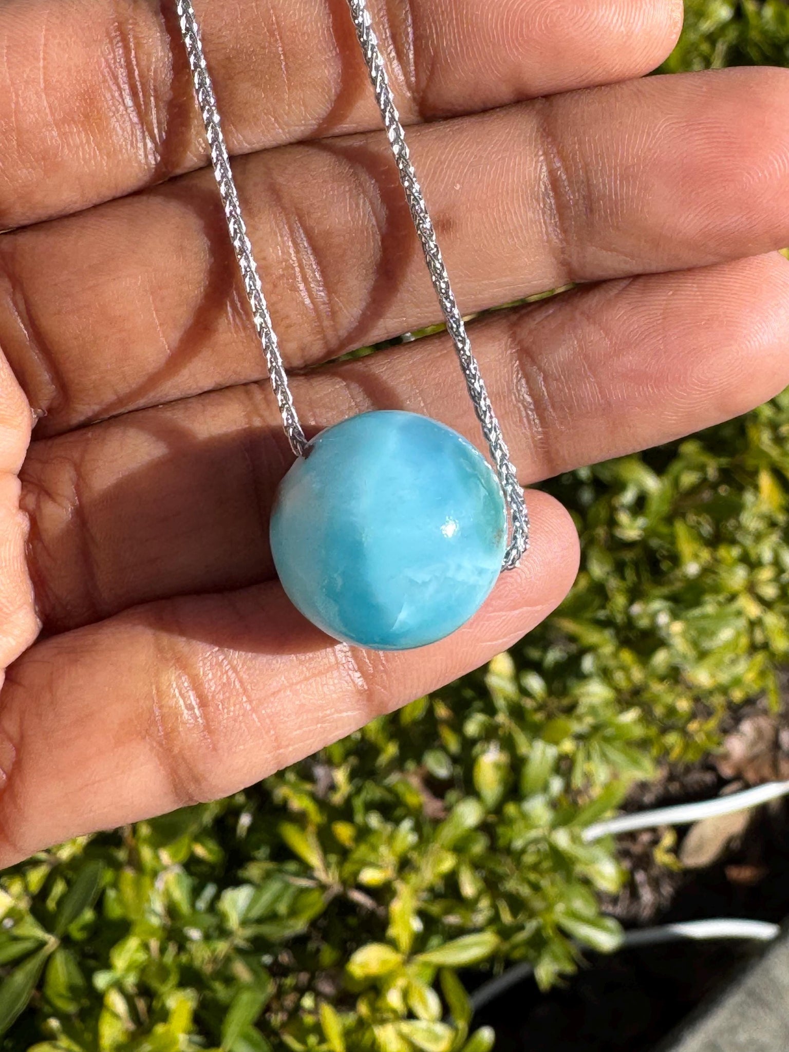 Rare 17.5mm Sphere Larimar Gemstone Necklace, Dominican Republic Larimar Round Ball Necklace, Healing Stone Silver Jewelry