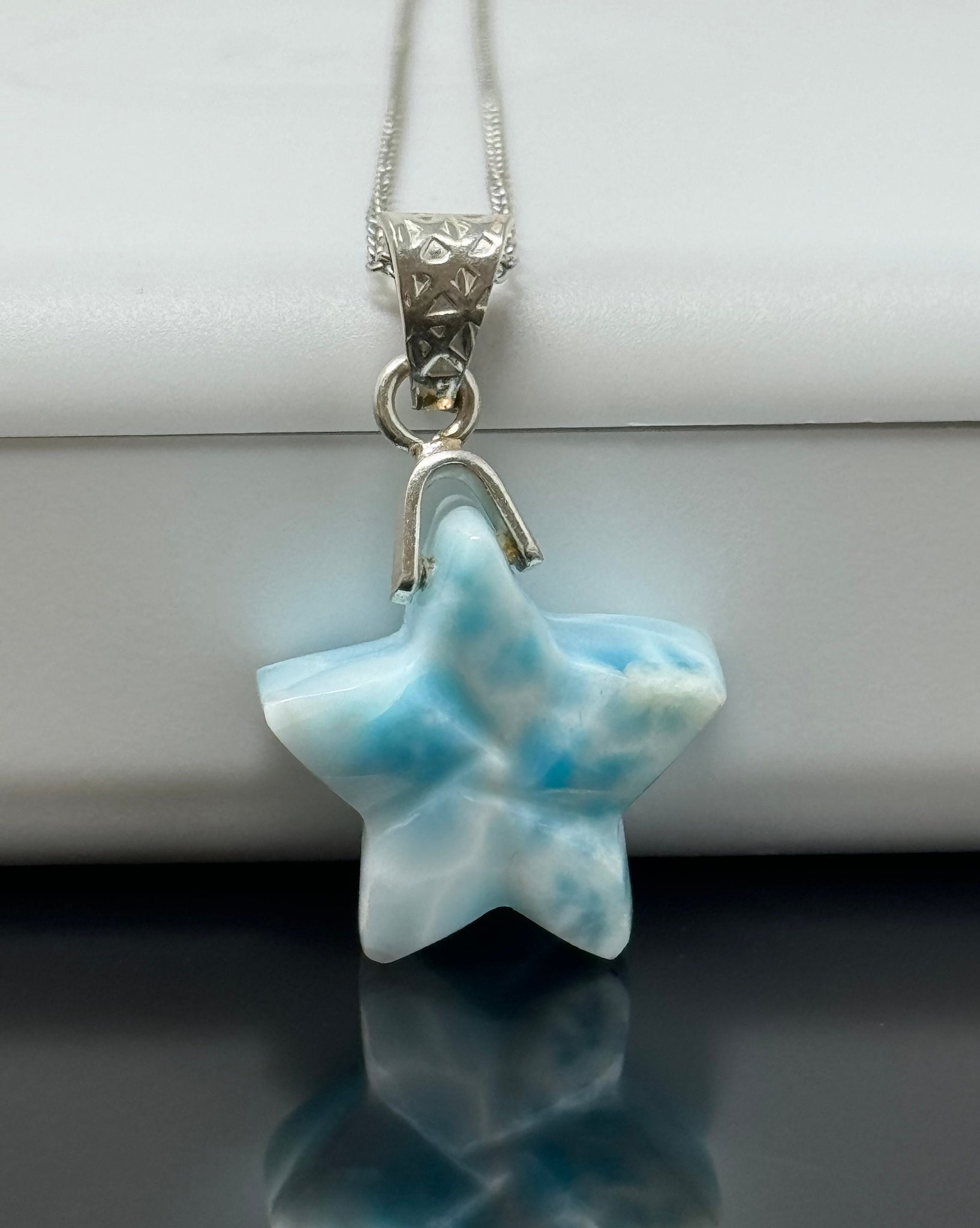 Larimar Star Shape Handmade Gemstone Sterling Pendant Necklace
