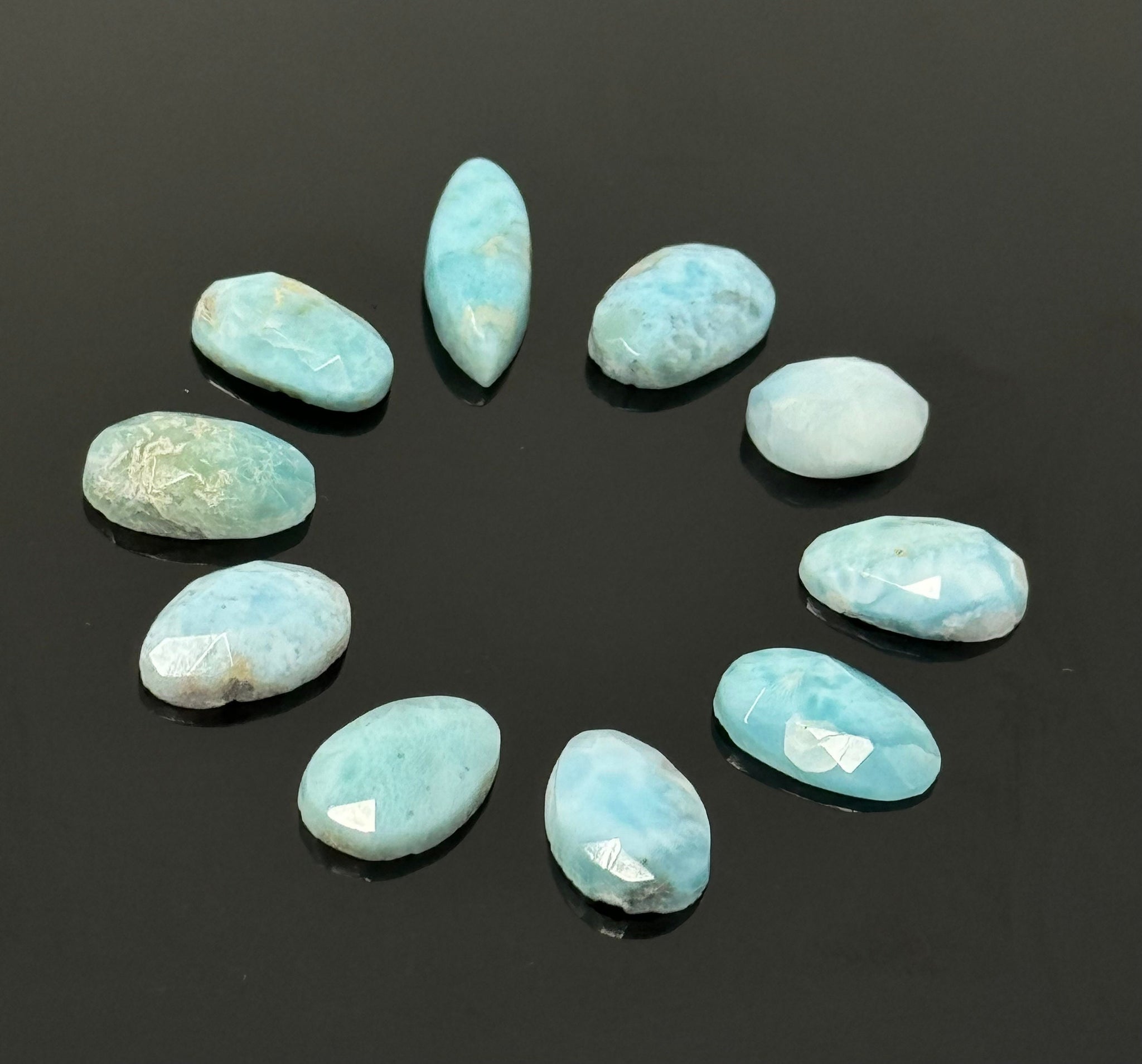 10 Pcs Natural Larimar Rosecut Cabochons, Loose Gemstones, Larimar Rose Cuts, 11.5x7mm - 19x9.5mm